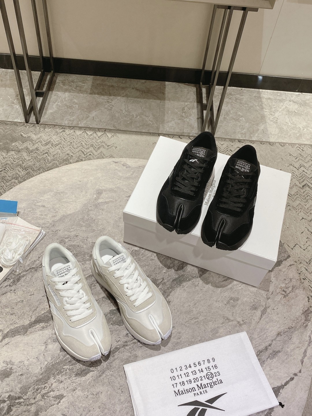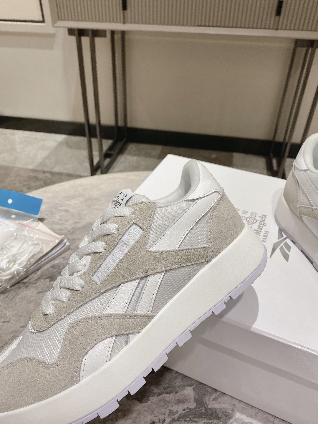 메종마르지*라 리복 신상품 토슈즈 올해 리복과 협업한 클래식한 디자인 [CLASSIC NYLON]으로 마르지엘라 로고를 구두창 위에 올림 전체적으로 가죽 나일론과 스웨이드 조합으로 톤 다운되었지만 질감이 기본과 구분되어 스타일리쉬