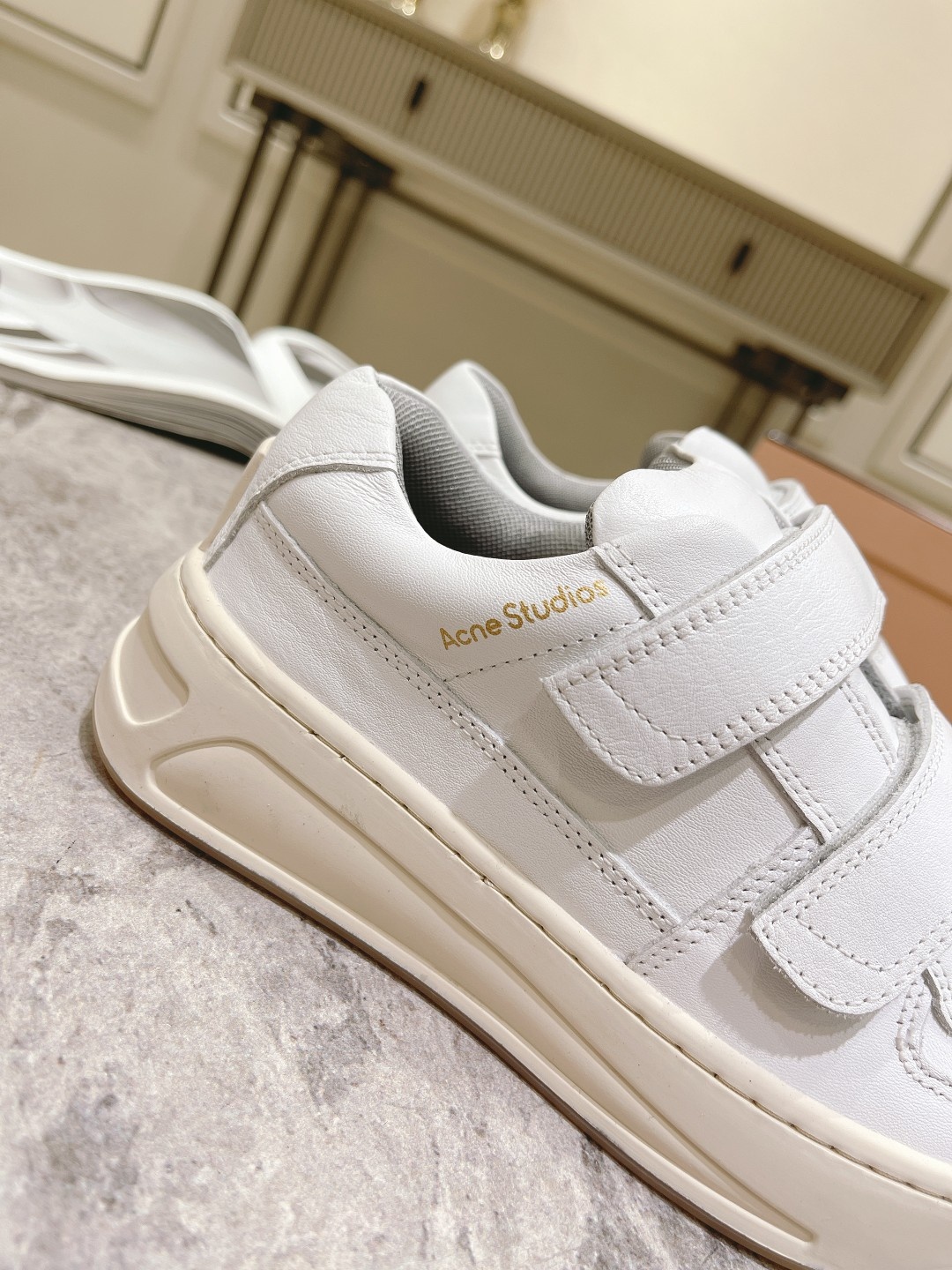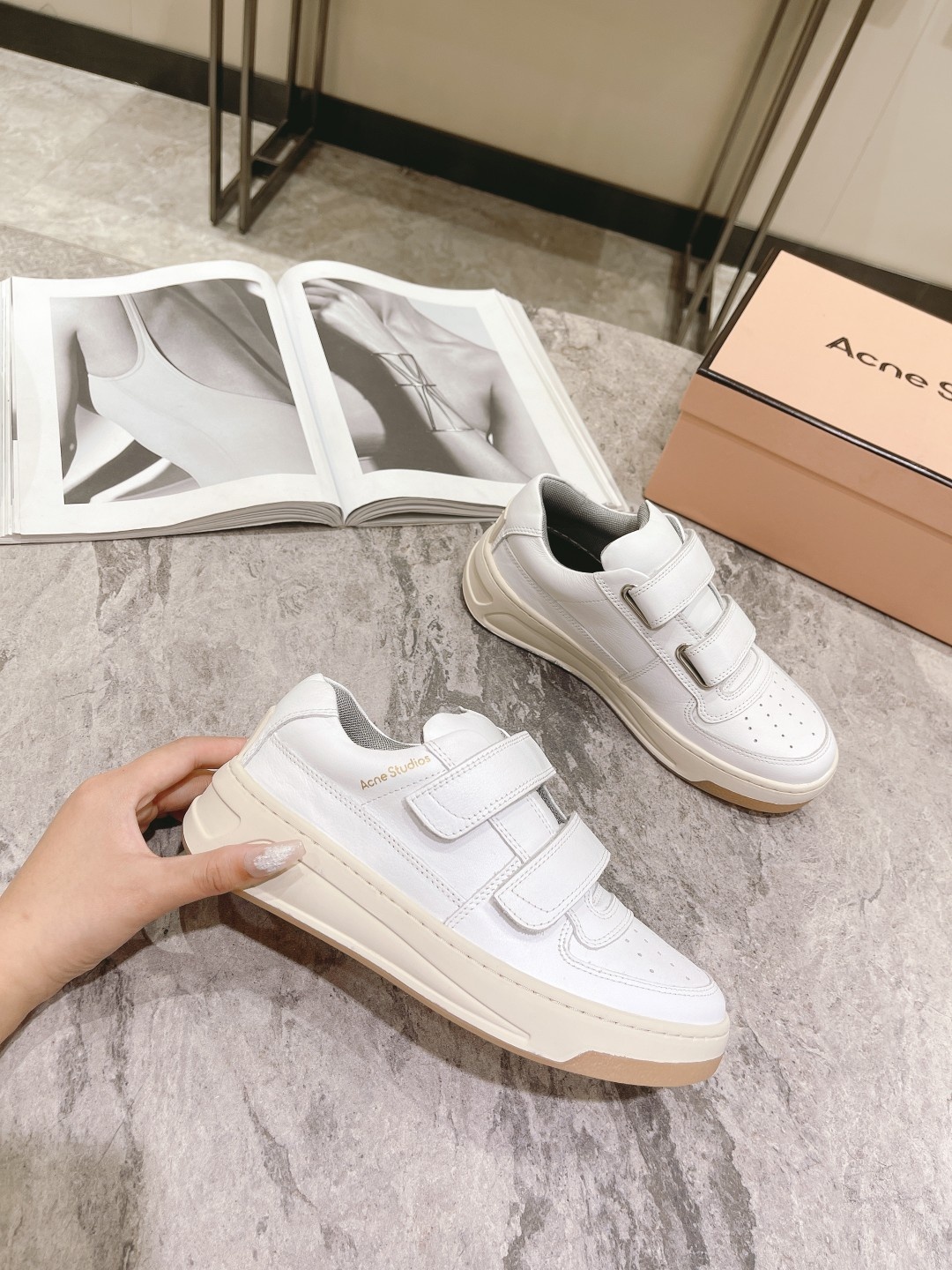 [Acne Studi**] 클래식 벨크로 스마일 화이트슈즈 원판복각 1:1 사모대저 재료와 가공이 원판과 일치 대비 환영