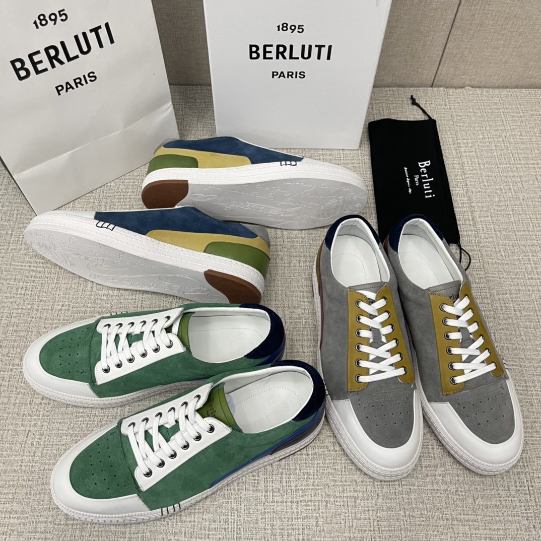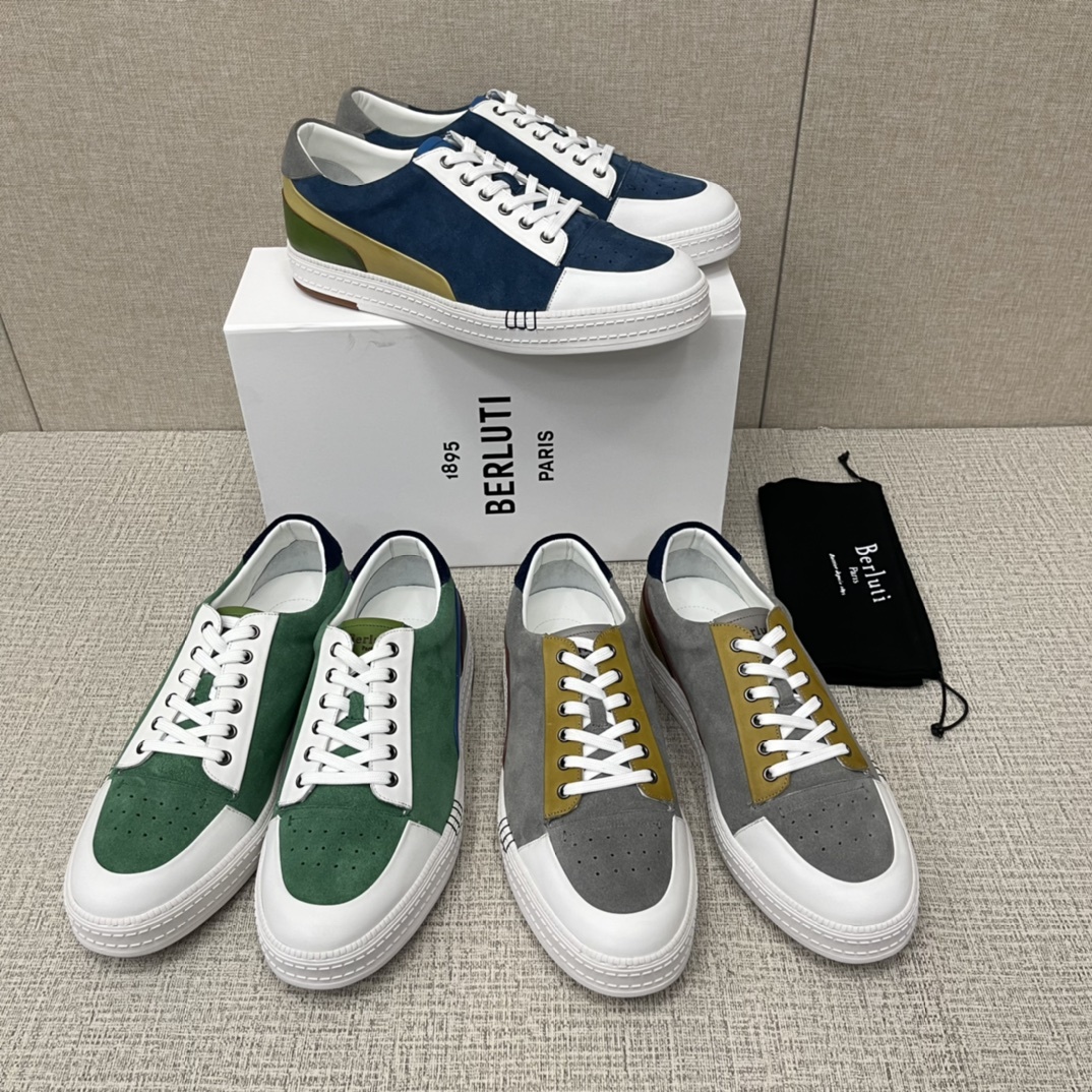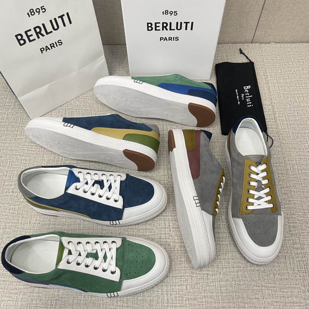 BERLUTI PLAYTIME PALERMO 남성용 스케이트보드화 신발 표면에 수작업으로 이음매 스티치 운동 표면처리 메탈 다이아몬드 아일렛 신발 밑창에 Scritto 패턴 장식 순면 끈과 신발 표면 패치워크 디자인 컬러 매치 수입 가죽 핸드메이드 스페셜 염색 패치워크 스크럽 소가죽 소재 화사한 컬러 내피 물감 송아지 오리지널 커스텀 일체형 소가죽 매트 편안함 짱 독점 오픈 투톤 TPU 베이스