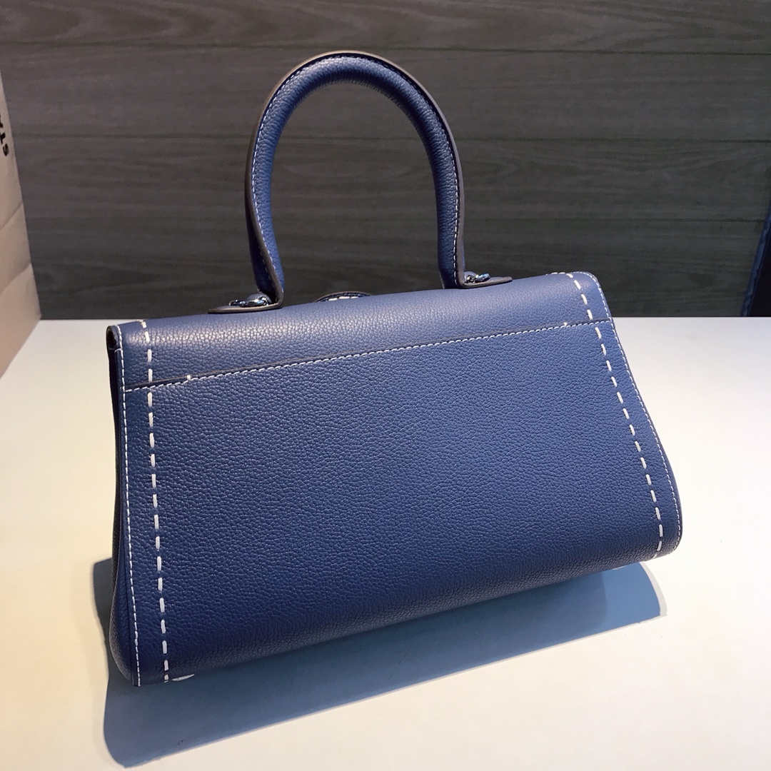 최고급 오리지널 【델보】브리앙 토고 가죽 핸드스티치 왁스실 번거로운 공예와 거친 손바느질은 10년 동안 장인이 만듬 세트로 어깨끈, 거울 및 작은 걸이 장식을 조절 양가죽 내피 사이즈 : 28 12 16