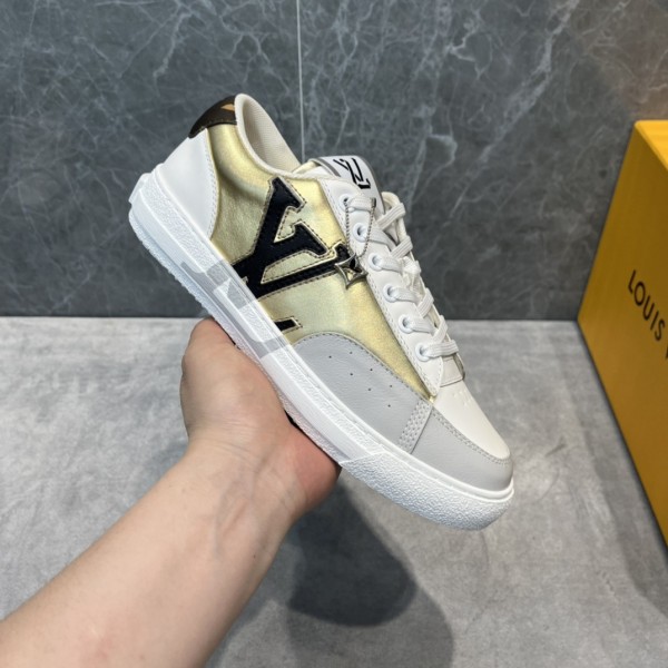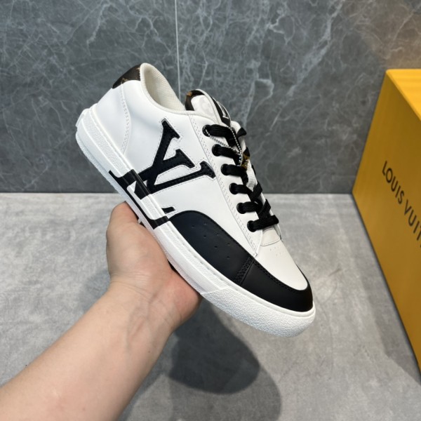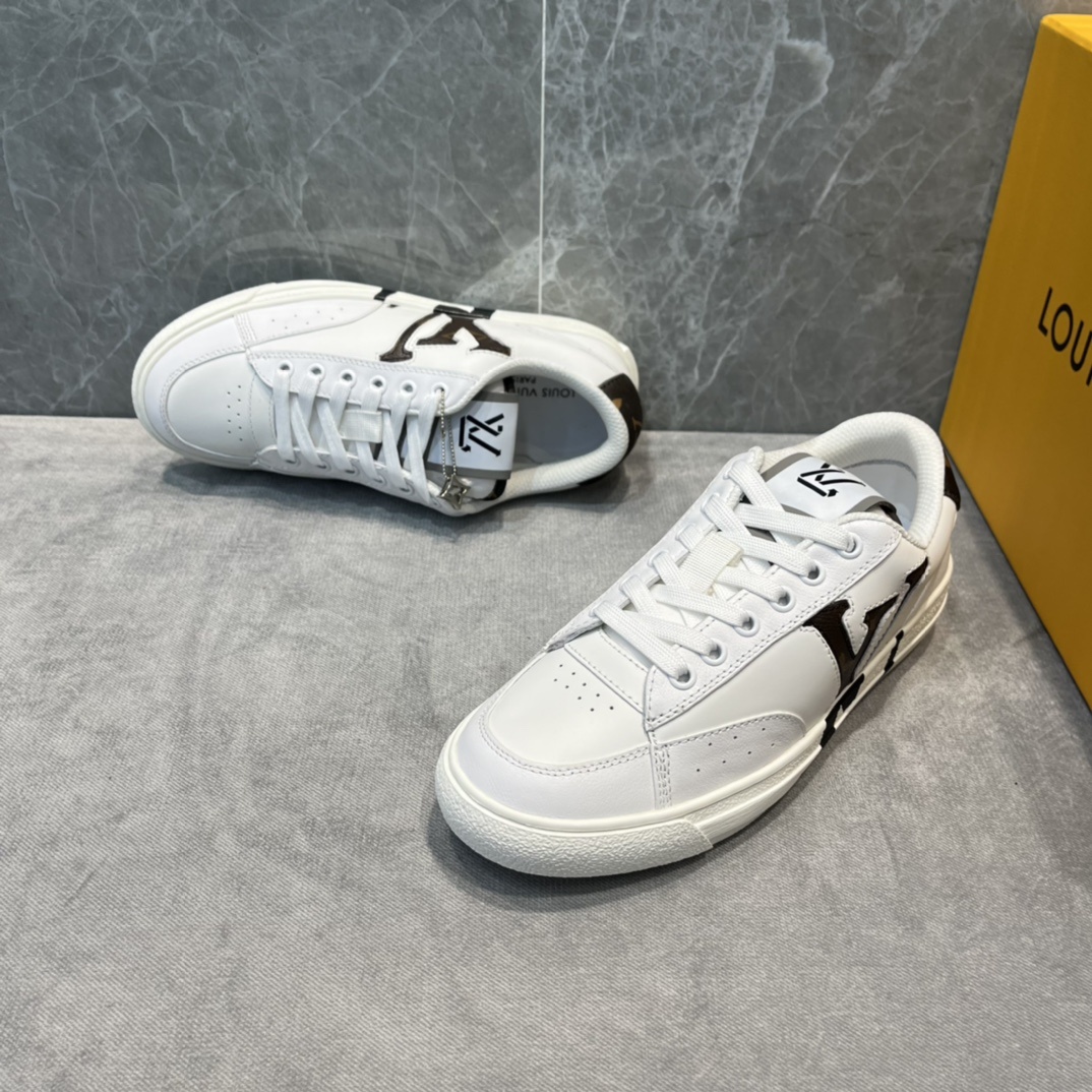 LV CHARLIE 커플용 로우탑 운동화 헤드라이너 소가죽으로 만들어졌으며 가죽은 부드럽고 섬세하며, 발은 통풍이 잘 됩니다 가벼운 오리지널 TPU 베이스에 모노그램 플로럴 장식