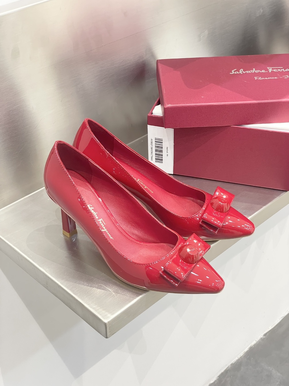 SalvatoreFerragam* 바라 리본 단화 신발 표면: 수입 소 에나멜 속:양가죽 대저: 수입 인쇄 진피 대저 굽:7cm