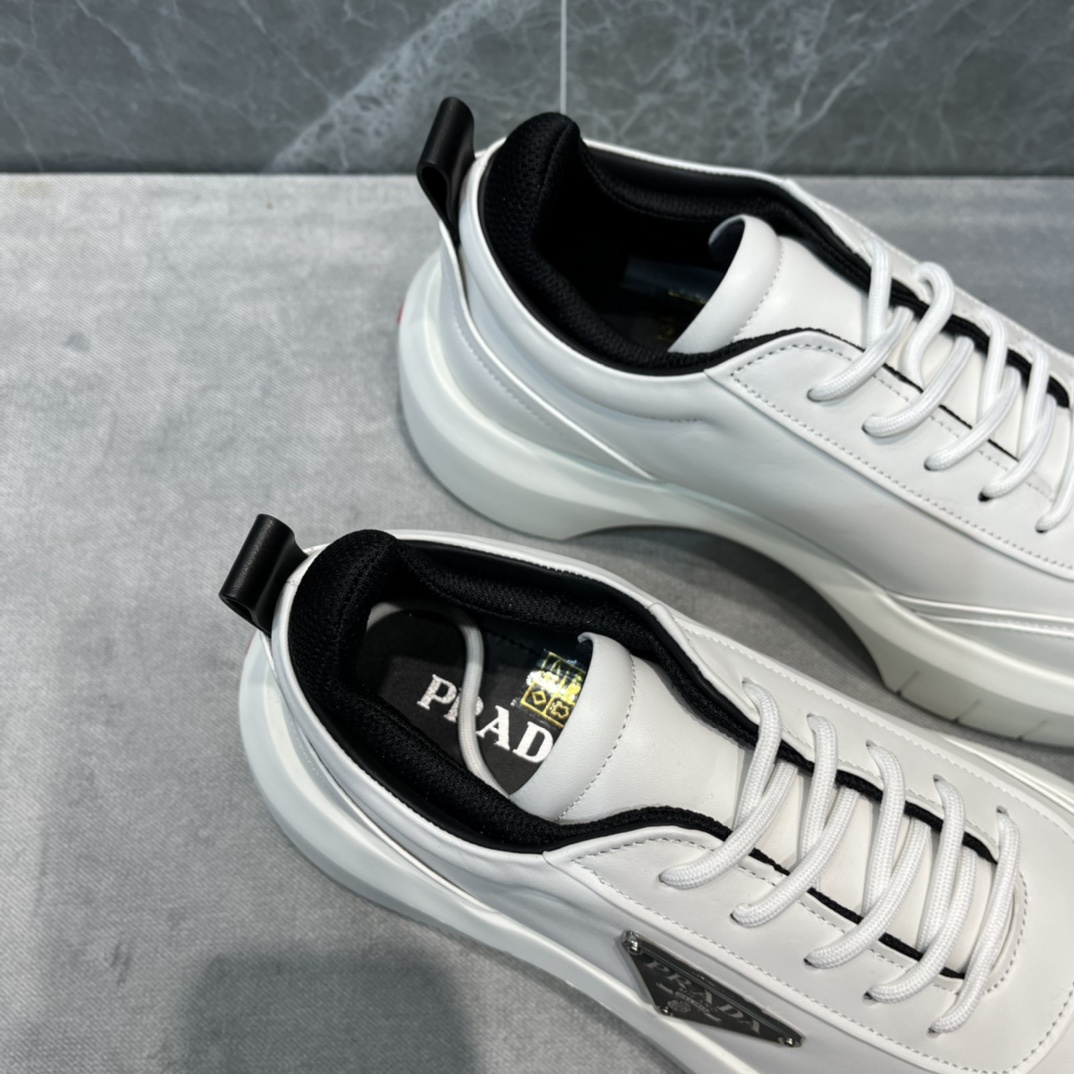 프라다 신상 송편 통굽 발포 고무 스니커즈 신발 표면에 심플한 수입 소가죽 패치 측면에 금전 철물 버클을 매치