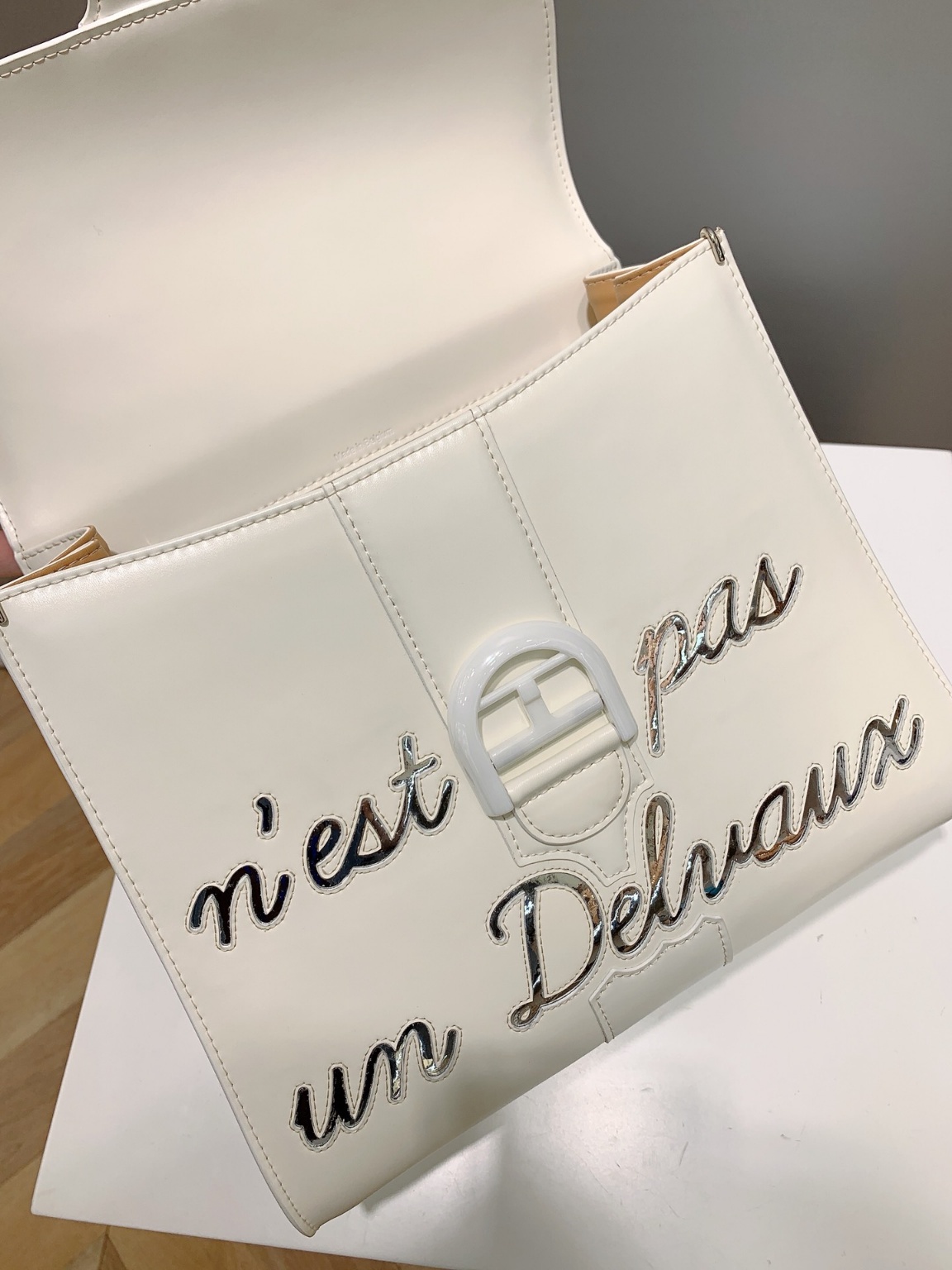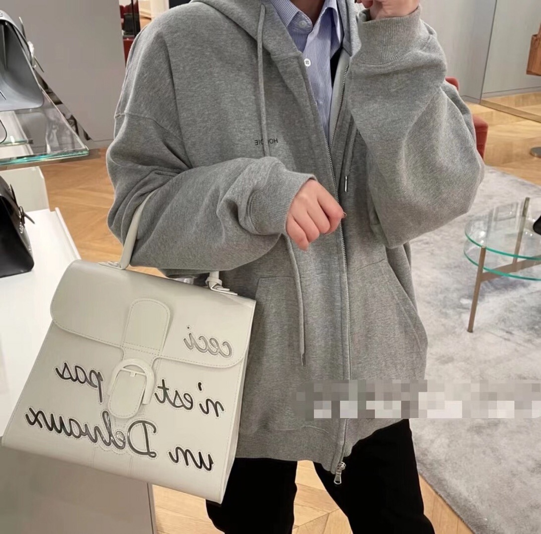 델보 신판 화이트 레터링 가방 벨기에 왕립 어용 브랜드 최고급 오리지널 [Delvaux] 뉴 더블링 브리앙 박스 가죽현물 쁘띠 양가죽 안감 세트로 긴 어깨끈, 거울 및 작은 걸이 장식을 조절가능 사이즈 28X13.5X22.5cm