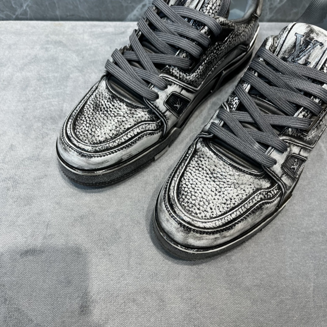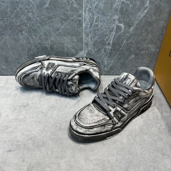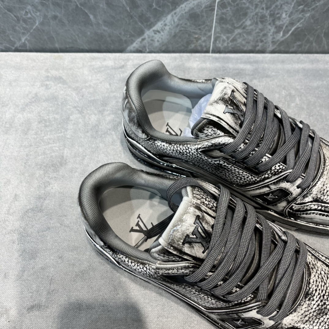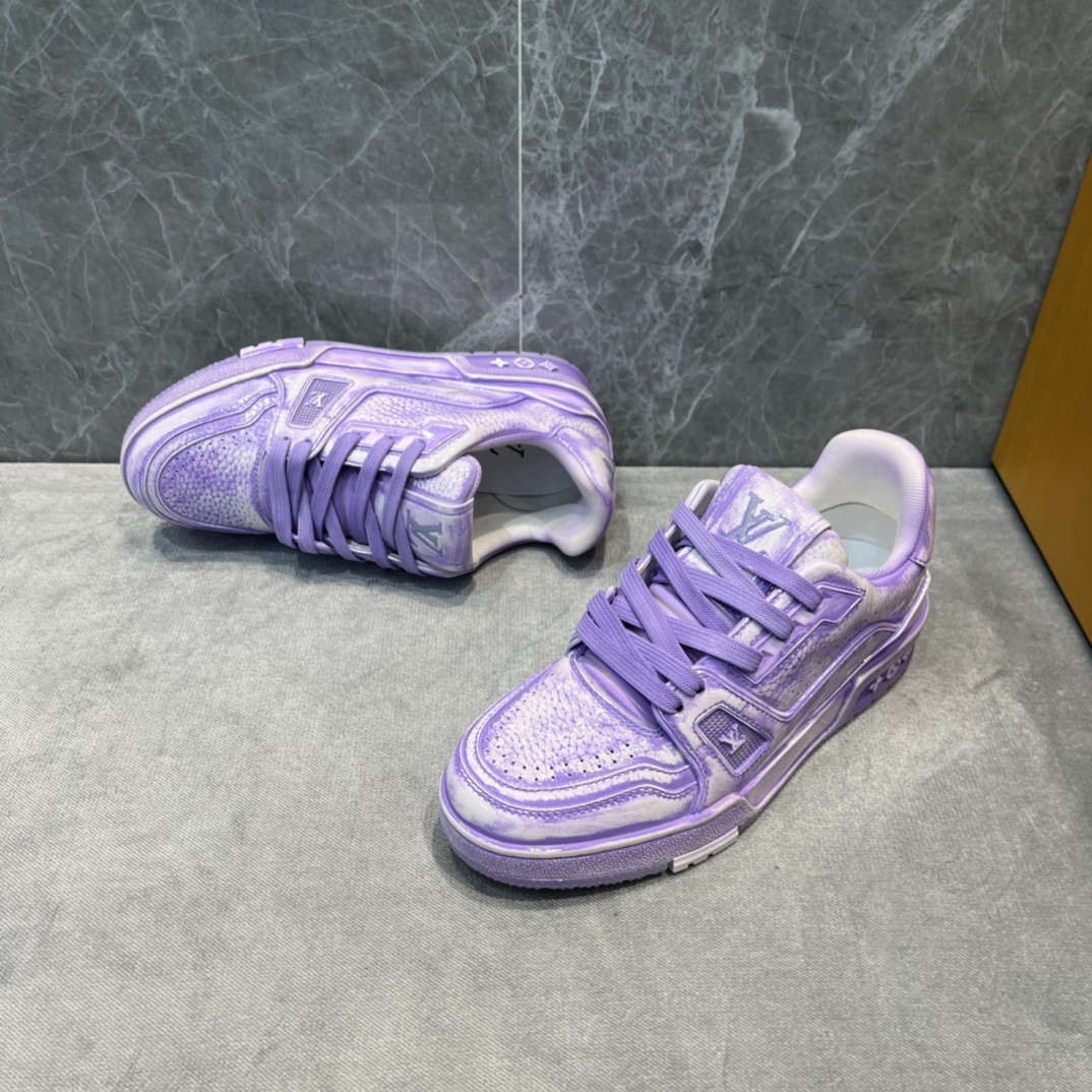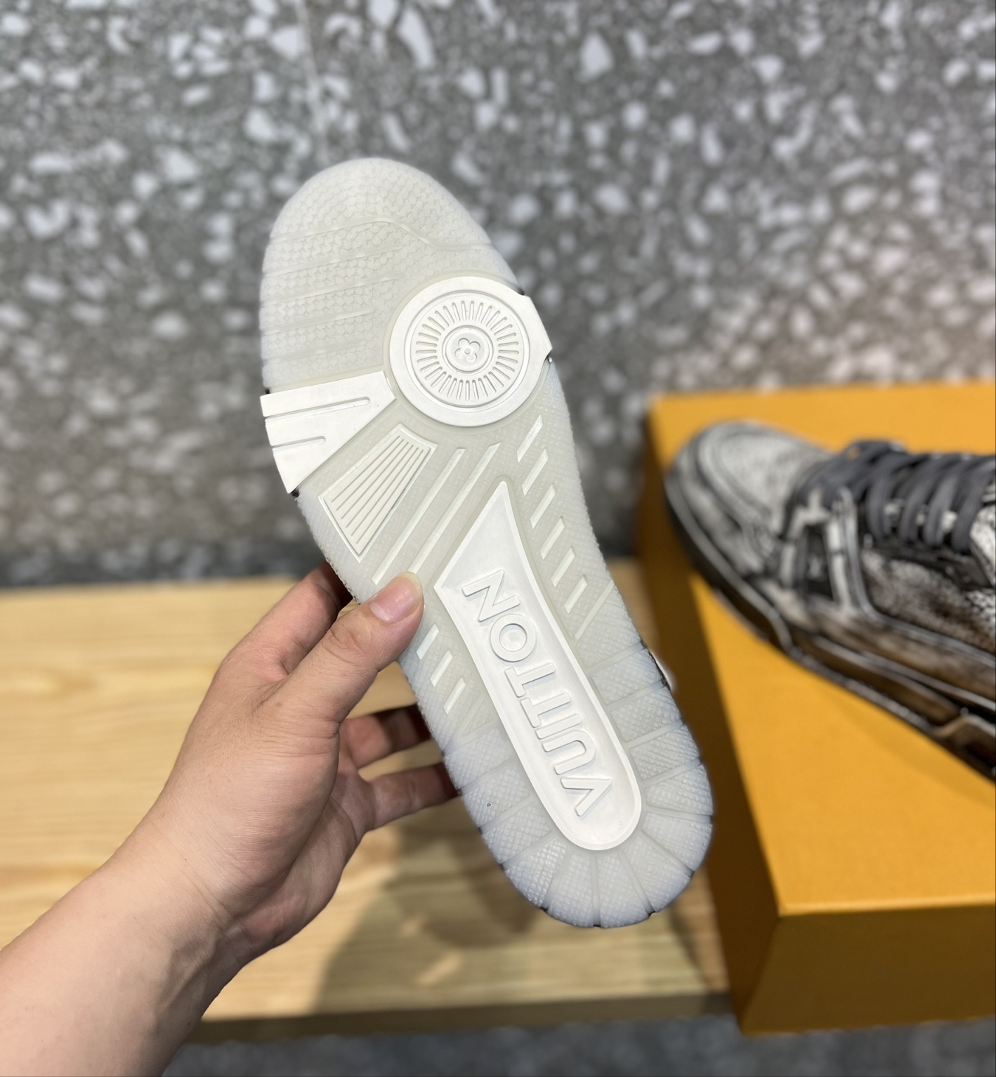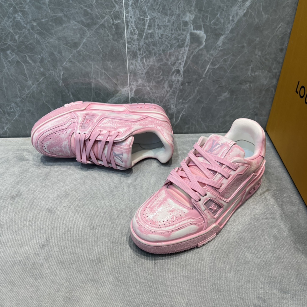 L 럭셔리 2023 Trainer 커플 운동화 전체 수입 점적 공법으로 차별화된 그라데이션 시스루 질감을 선사 클래식한 체스판 요소 디자인 테크니컬 러버에 혁신적인 젤 패드가 있어 편안함이 더욱 뛰어남 겉면에는 모노그램 플라워 패턴이 장식