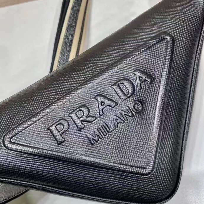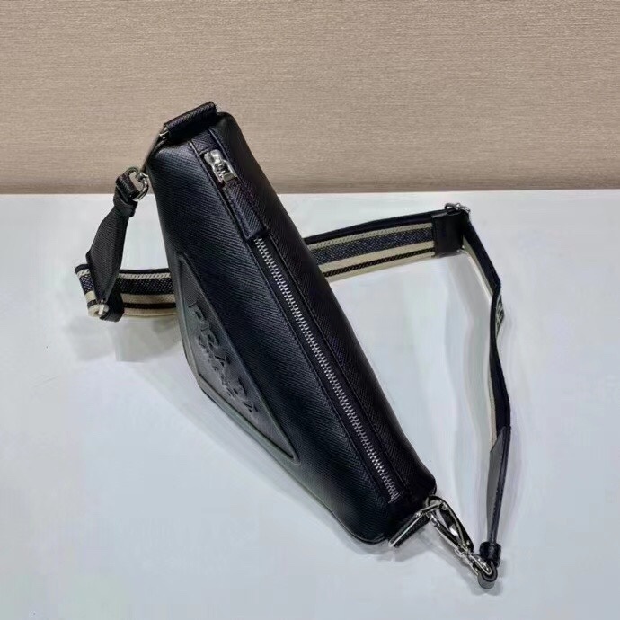 사피아노 트라이앵글백 모델번호 2VH155 P가의 상징적인 형태를 취한 삼각백 브랜드 아이코닉의 사피아노 가죽으로 제작 탈부착이 가능한 자수 어깨끈 사이즈 28x18x11cm