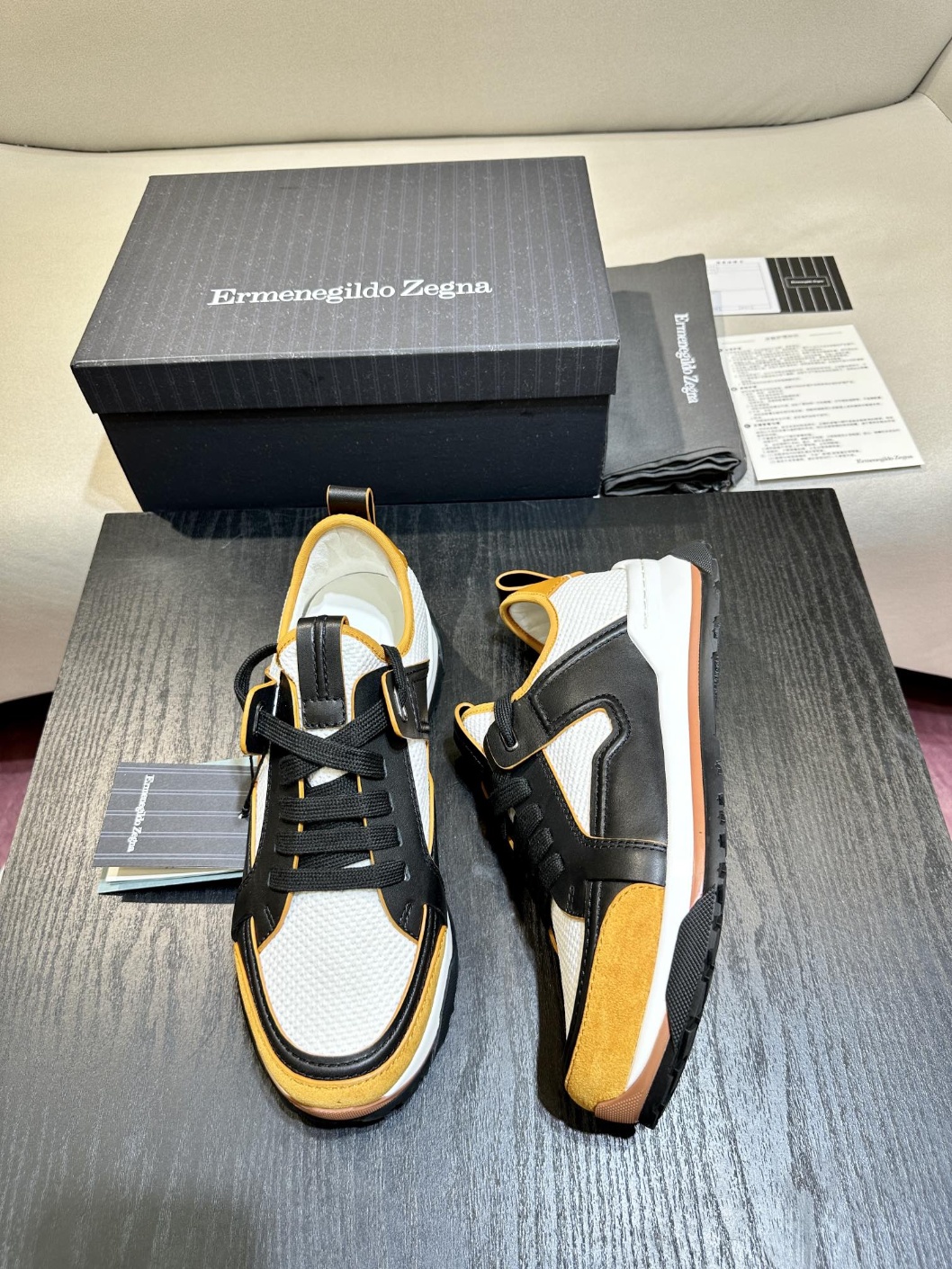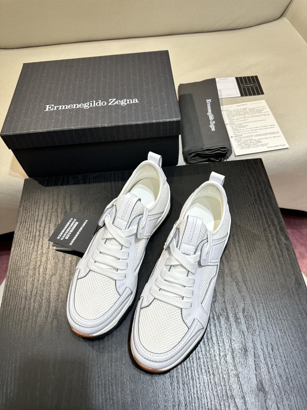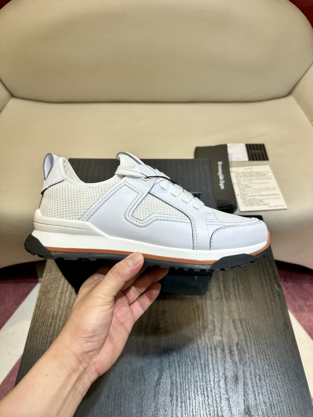제냐의 최고급 가벼운 러닝화 매끈한 송아지 가죽과 메쉬 원단 가벼운 미끄럼 방지 고무창과 탈부착이 가능한 Sanitized 쿠션 로크 컬러의 스트라이프를 장식하여 선명한 결을 더함