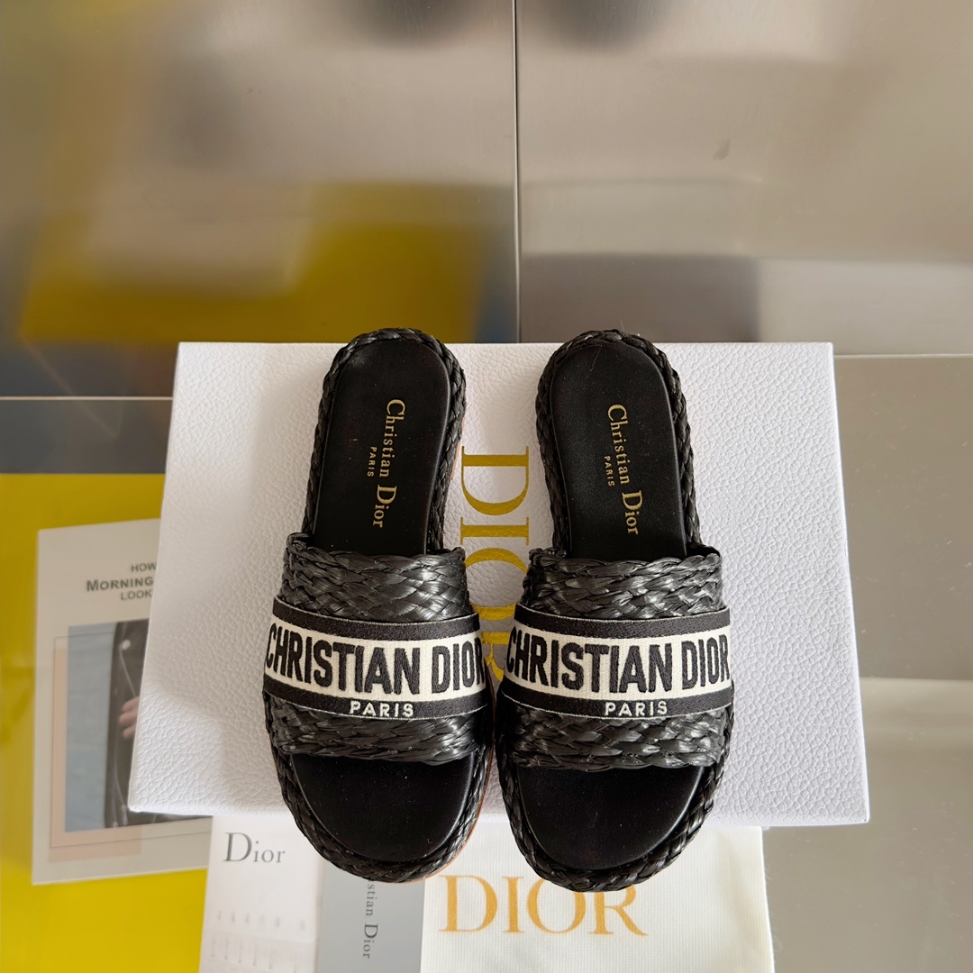 디올 23 여름 신상 드웨이 짚 플랫 샌들 스트레이트 슬리퍼 오리지널 구매 개발 제작 드웨이 코튼 슬리퍼 ▪ 겉감: 오리지널 커스텀 짚 짜임+천면 자수 ▪ 안감: 수입 맞춤 양가죽 안감 ▪ 밑창: 오리지널 커스텀 리얼 가죽 빅 바닥
