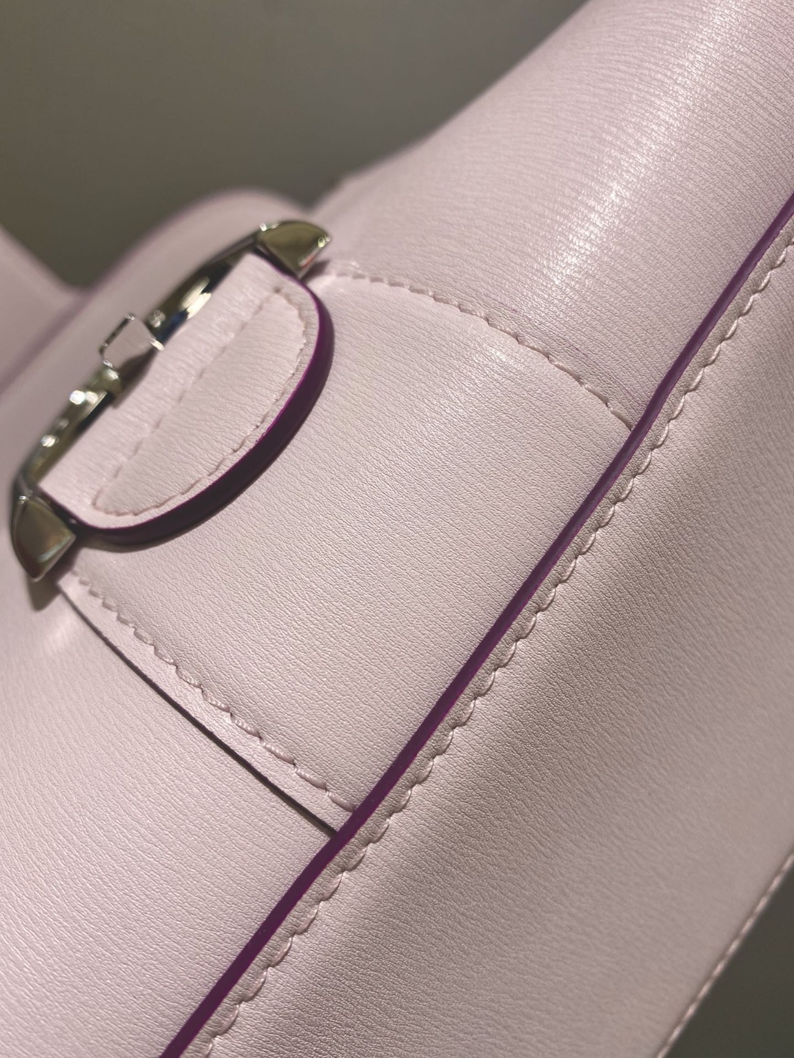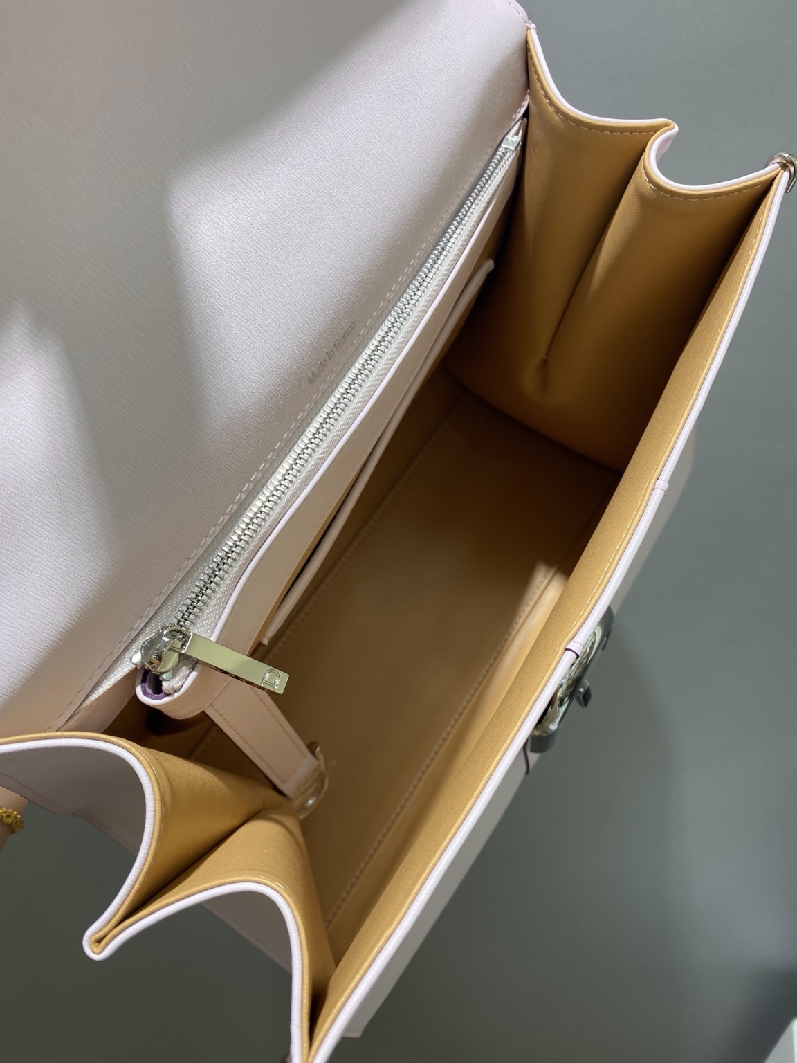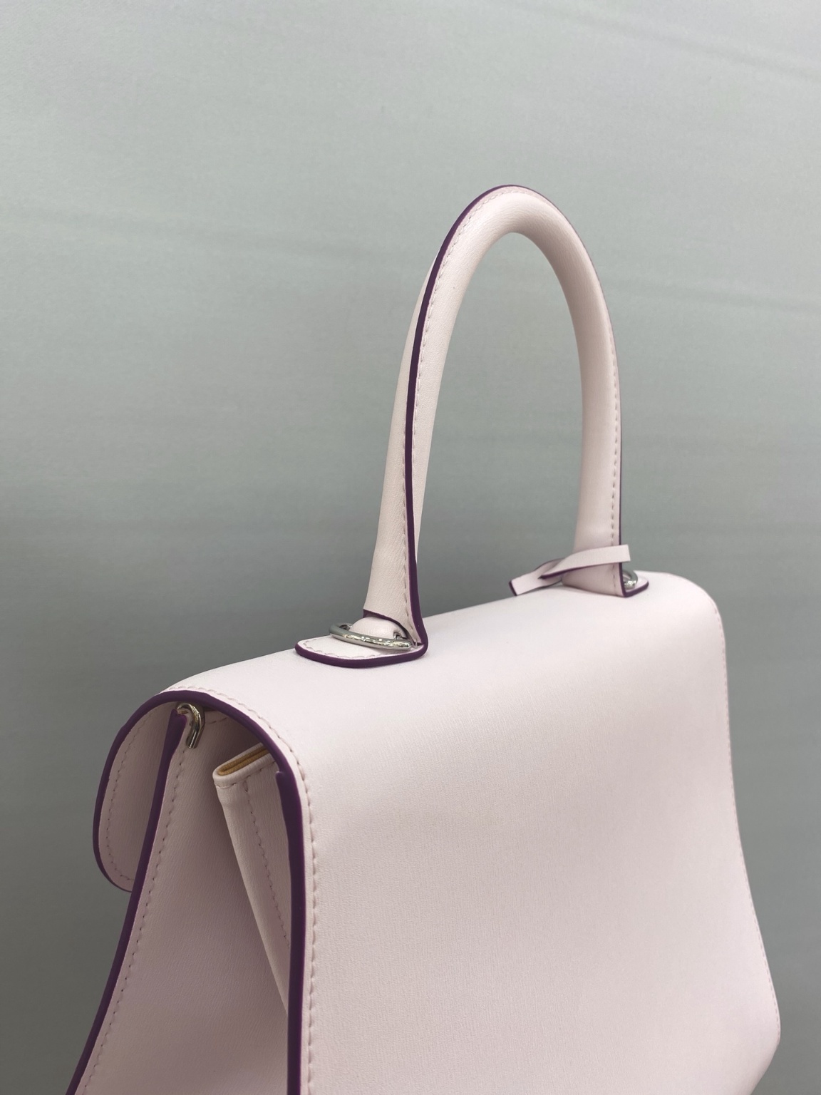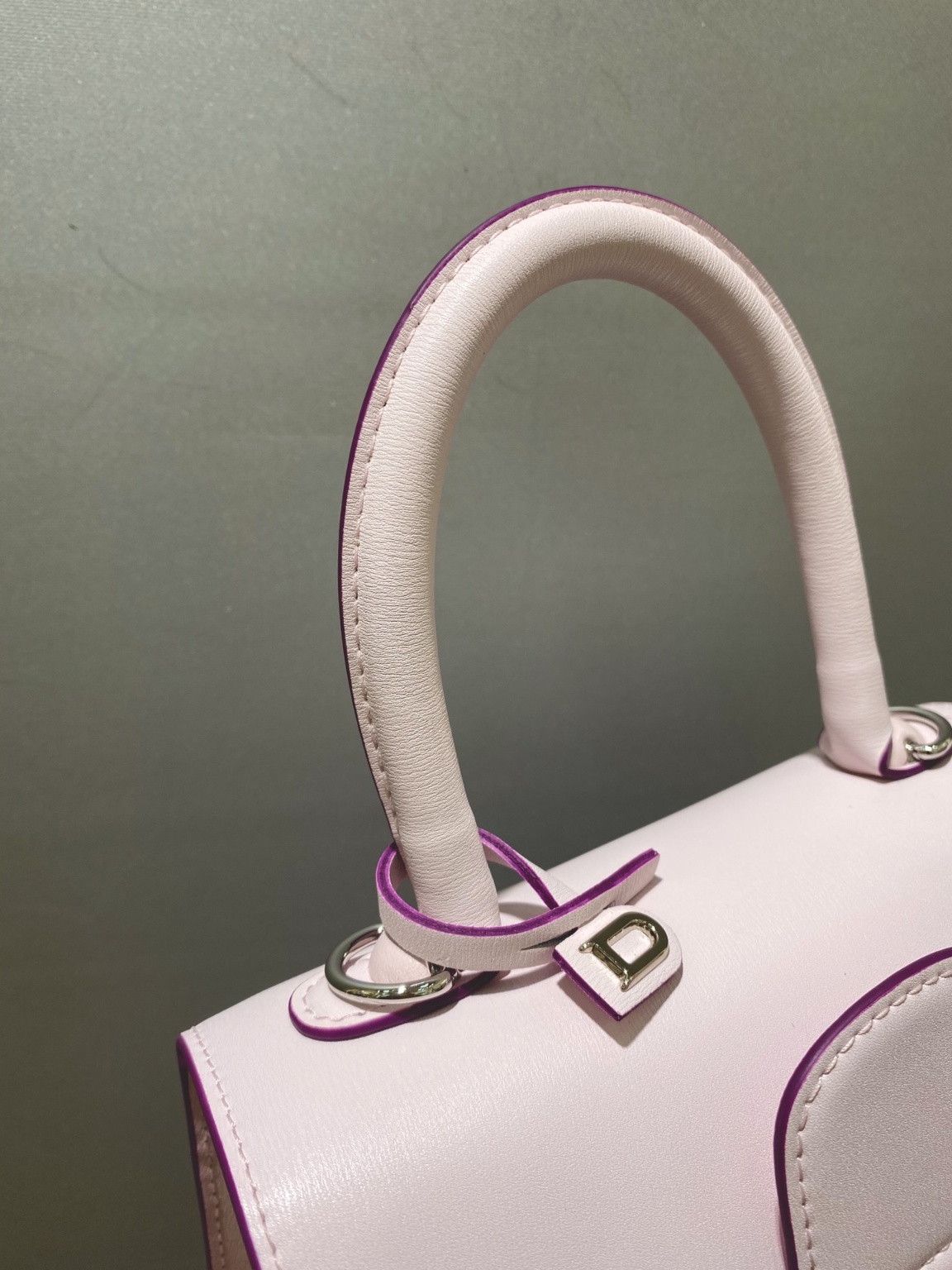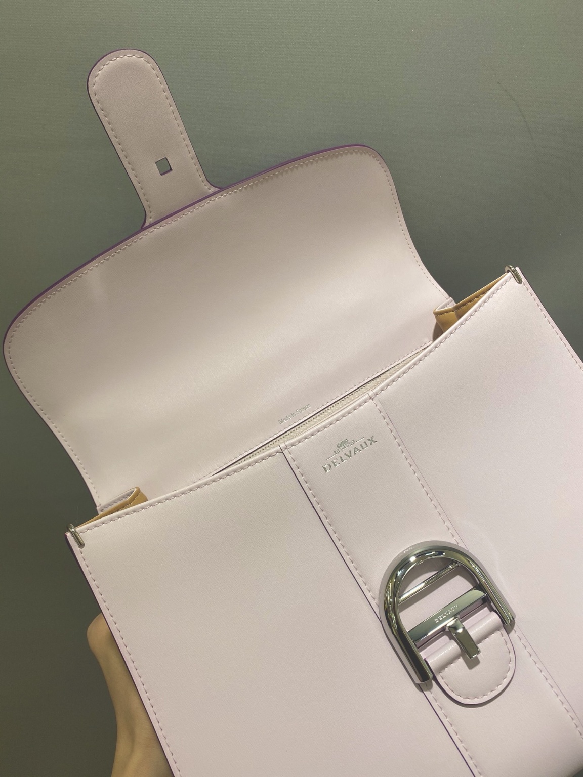 매장의 새로운 색상 라벤더 파우더 벨기에 왕립 어용 브랜드 최고급 오리지널 [Delvaux] 뉴 더블링 브리앙박스 가죽현물 쁘띠 양가죽안감 세트로 긴 어깨끈, 거울 및 작은 걸이 장식을 조절 사이즈28x13.5x22.5cm