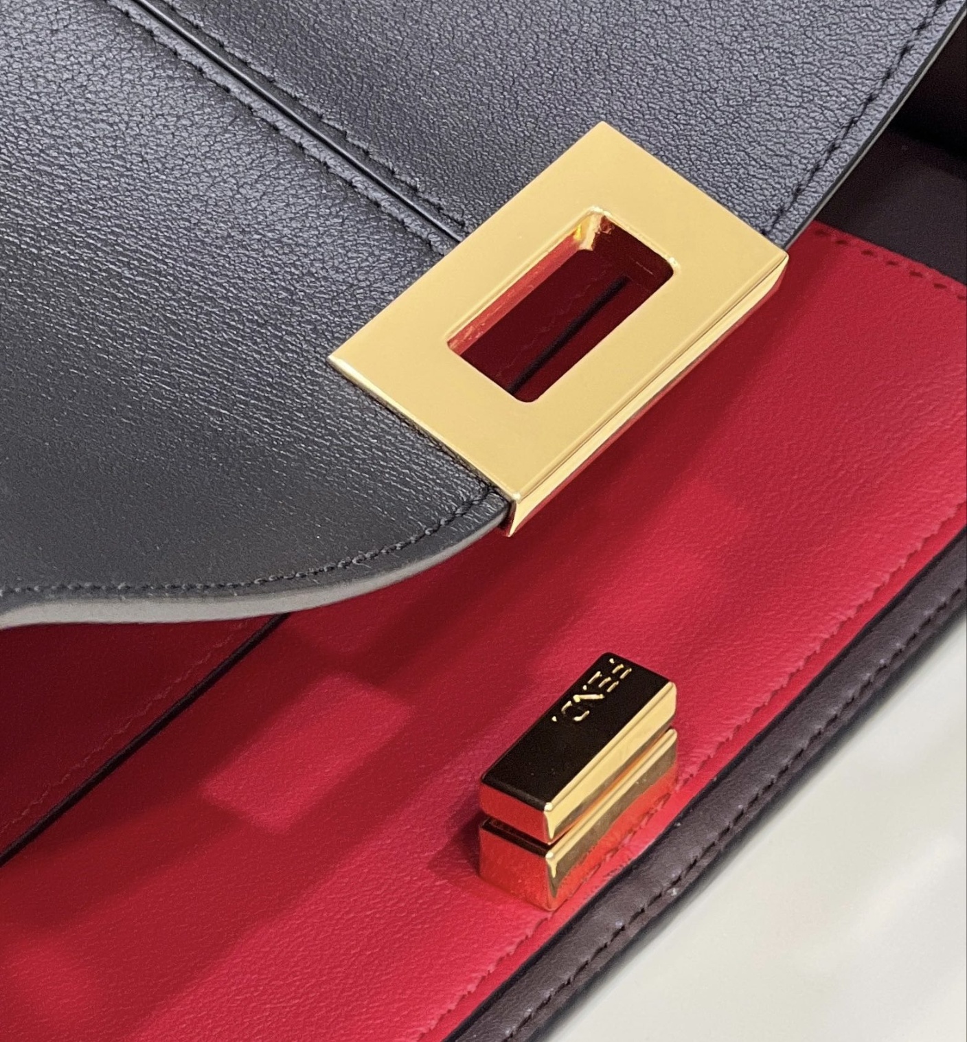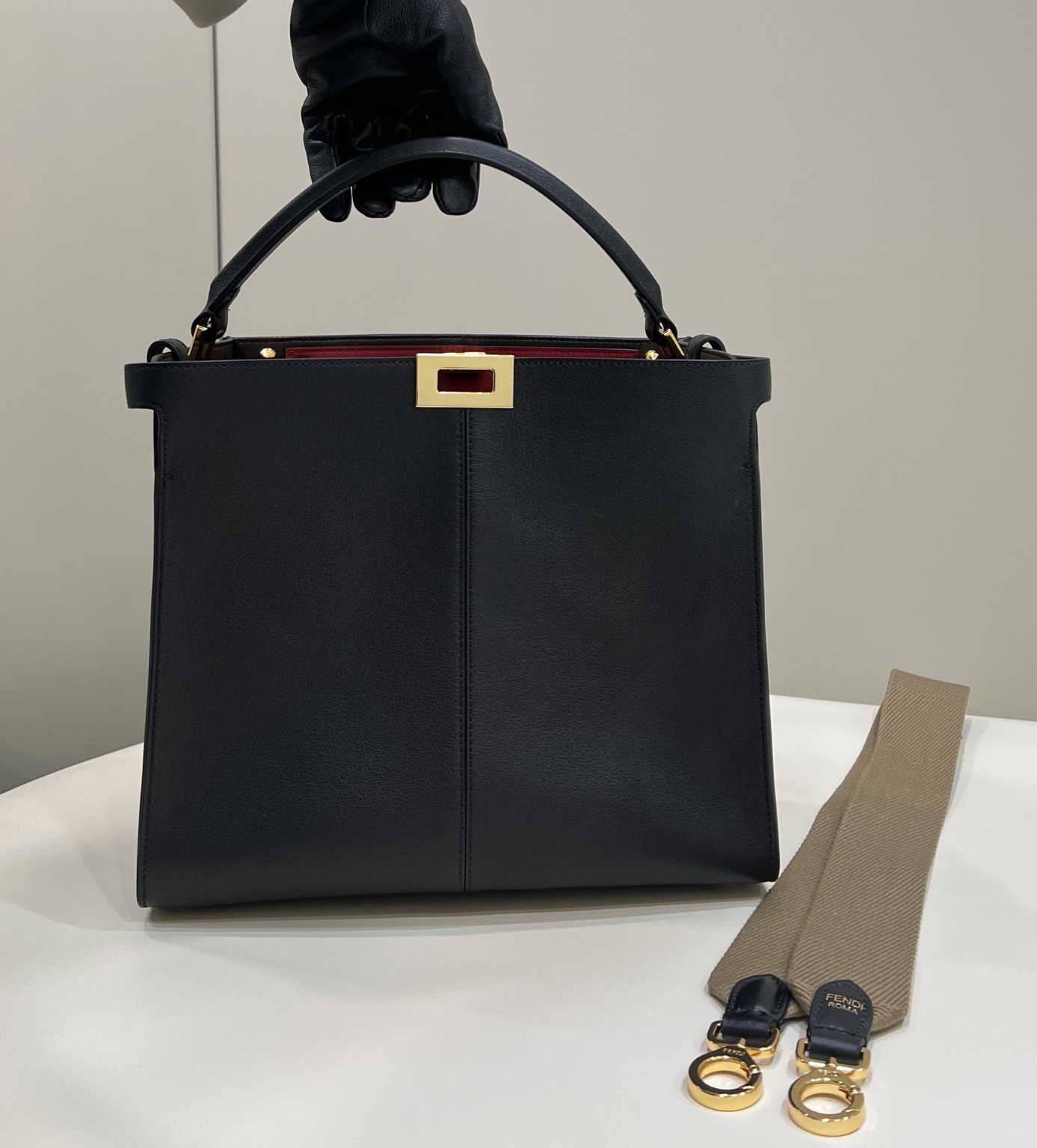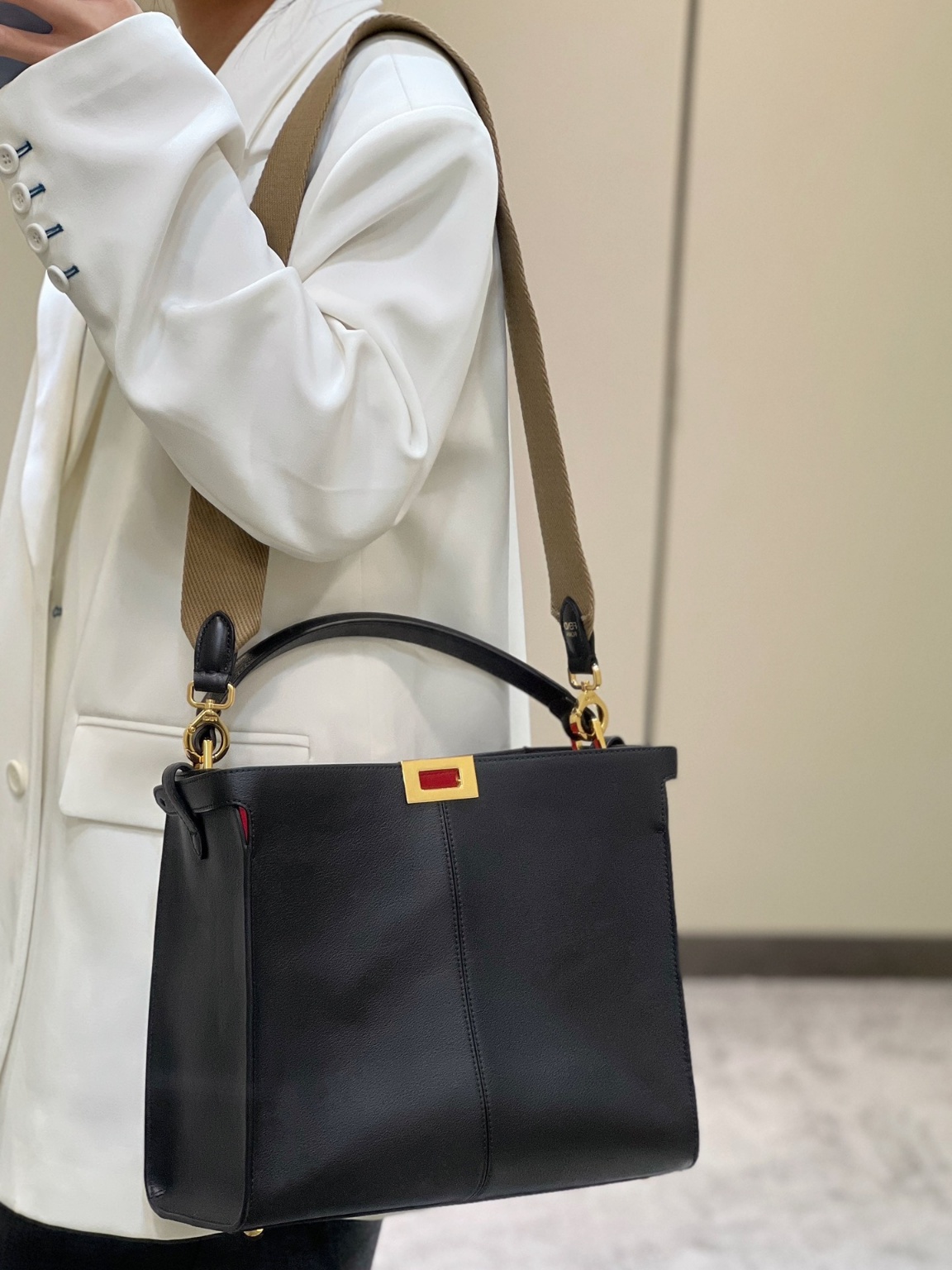 피카부 컬렉션 엑스라이트 남아공 소가죽 순면 와이드핏 웨빙 스트라이프 안감 더블 F 시그니처, 대용량 안감 사이즈 : 30x15x25cm