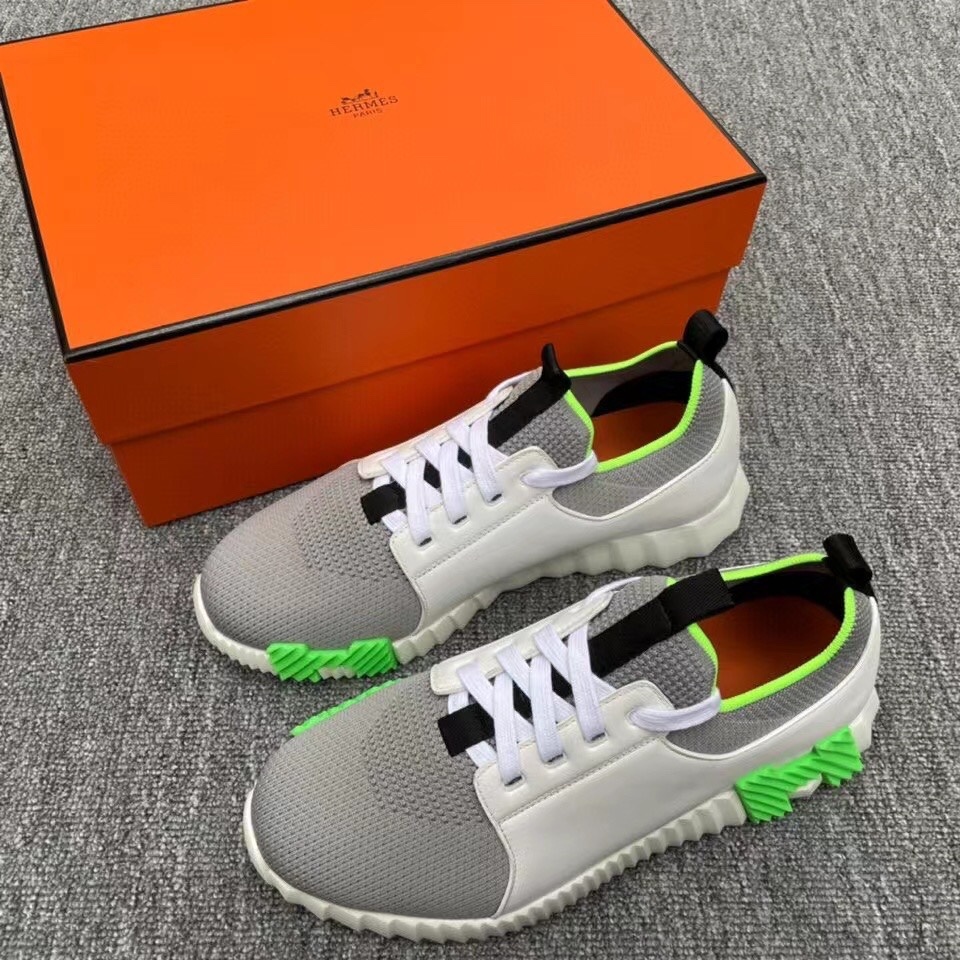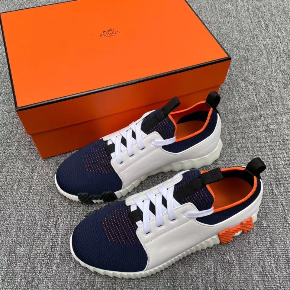 에르메스 매장의 새로운 남성용 스니커즈 하이테크 오리지널 패브릭과 헤드레어 소가죽의 소재 경량 EVA 오리지널 베이스 매우 가볍고 역동적이며 스타일리쉬한 스타일을 완성