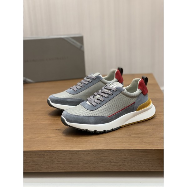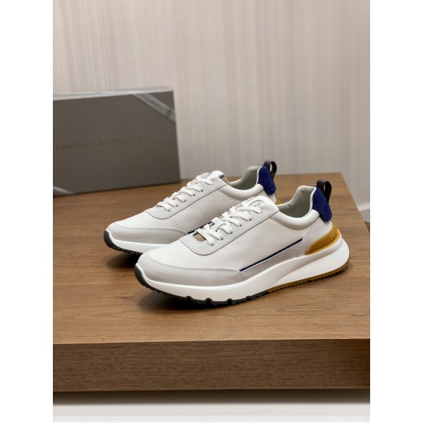 브루넬로 쿠치넬리 남성 운동화 송아지 가죽 소재의 운동화 창, 깔창에 브랜드 엠블럼 장식 뒤꿈치 웨빙 브랜드로 포인트 TPU 아웃솔은 신발이 발에 더 잘 맞고 편안하게 착용