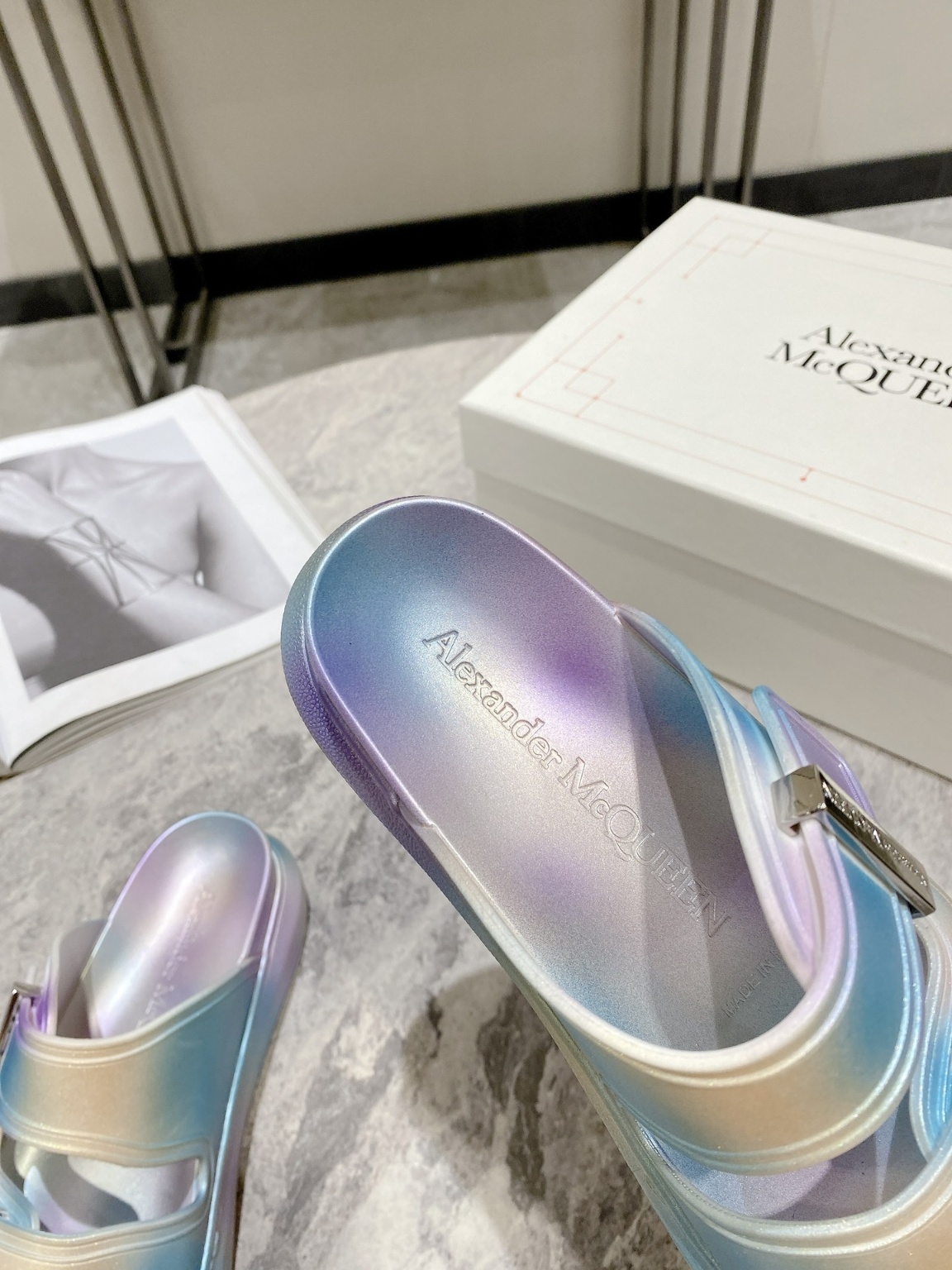 Alexande* McQuee* 2023 글리터 슬리퍼 쿨러 오리지널 복각 커스터마이징 맥퀸 투웨이 슬리퍼에 메탈 버클을 매치 맥퀸 로고를 새긴 약 5cm의 넉넉한 레그룸 오리지널 친환경 TPU 소재+PU+TPU 조합 프라이빗 몰드 1:1 메탈 버클