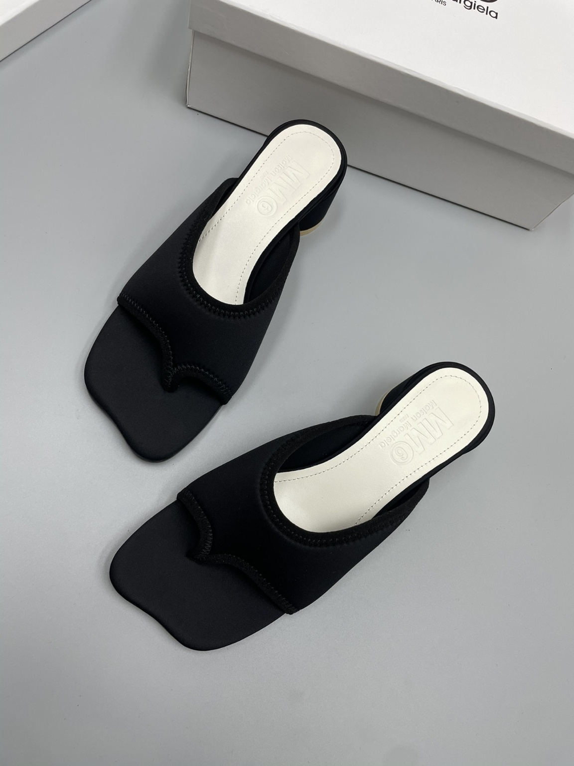 MM623ss 여름 신상 슬리퍼 오리지널 1:1 복각 블랙 패브릭 스판 원단을 매치 발밑이 부드러운 혼종 양가죽 이태리 리얼 가죽 베이스 굽: 5cm