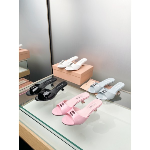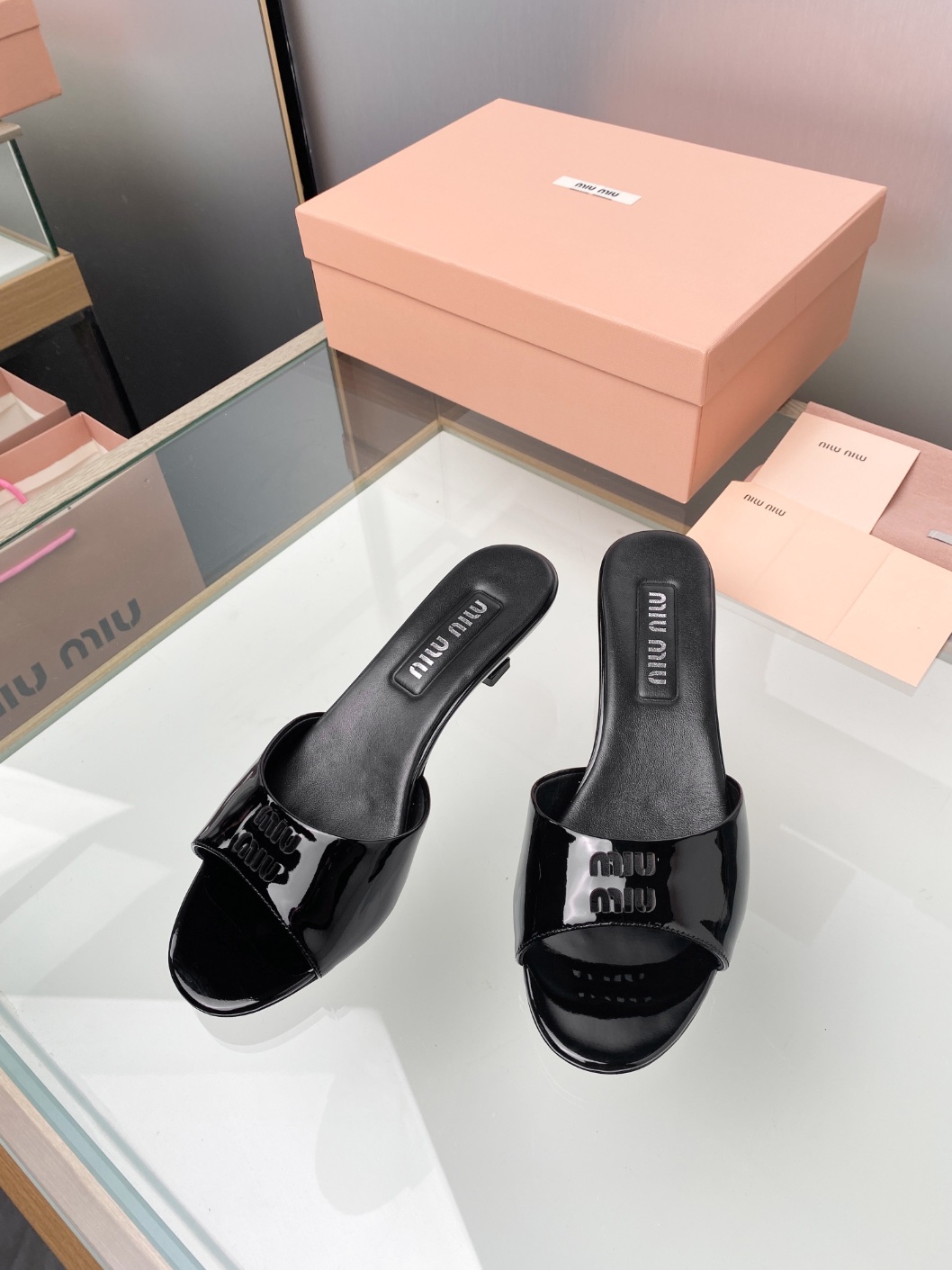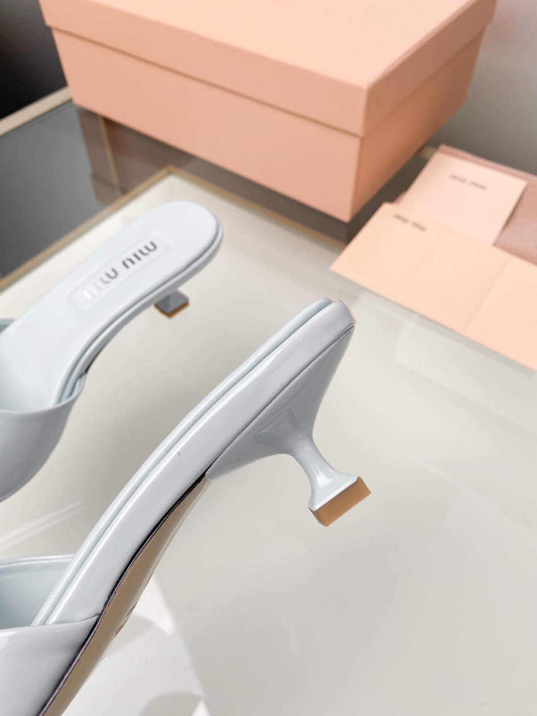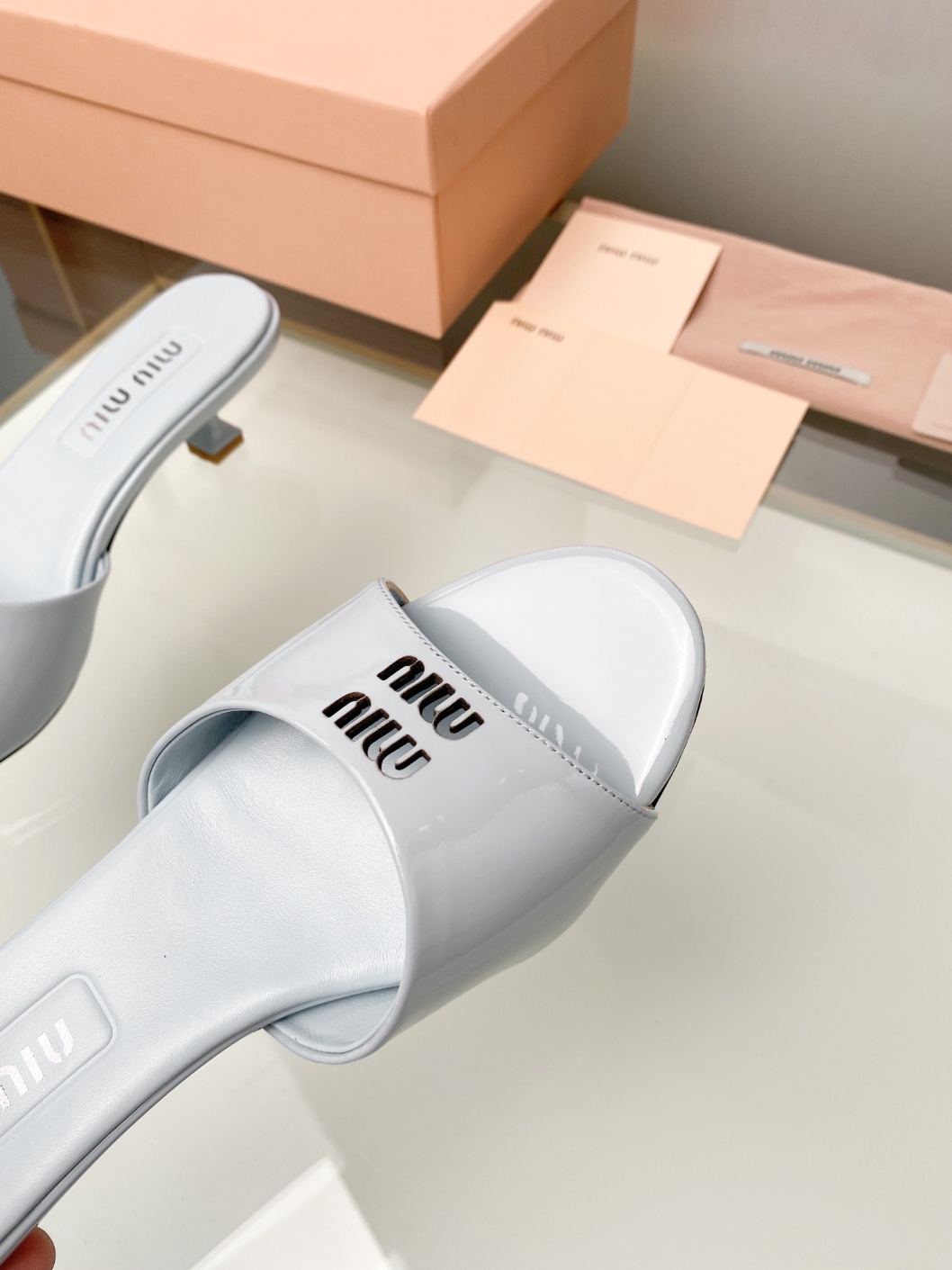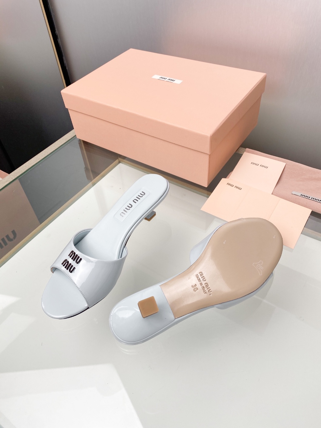 2022 미우미우 봄여름 럭키 컬렉션 고양이 뒤꿈치 슬리퍼 샌들 신발 표면: 맞춤 수입 송아지 에나멜 밑창: 오픈 오리지널 빅솔