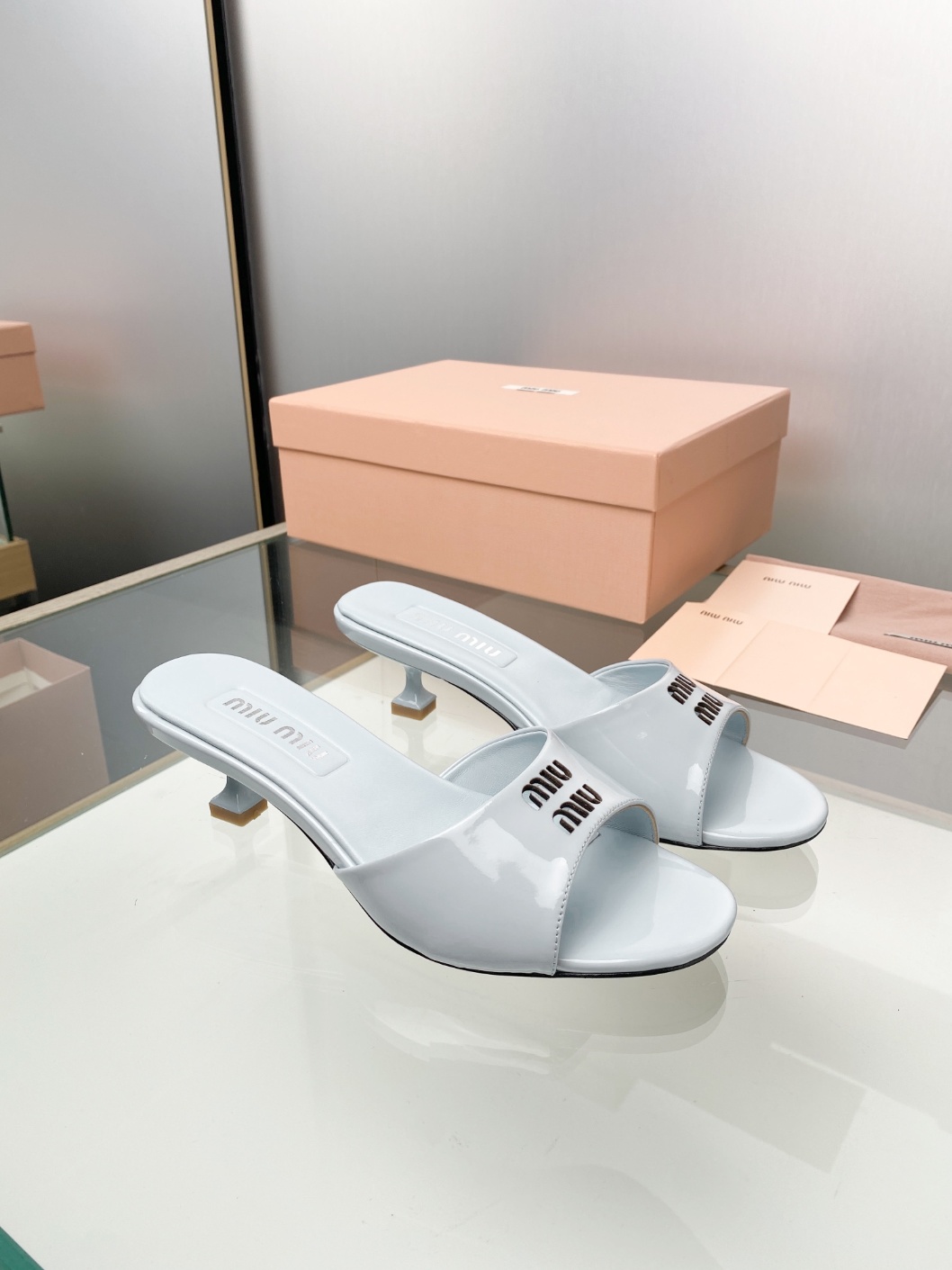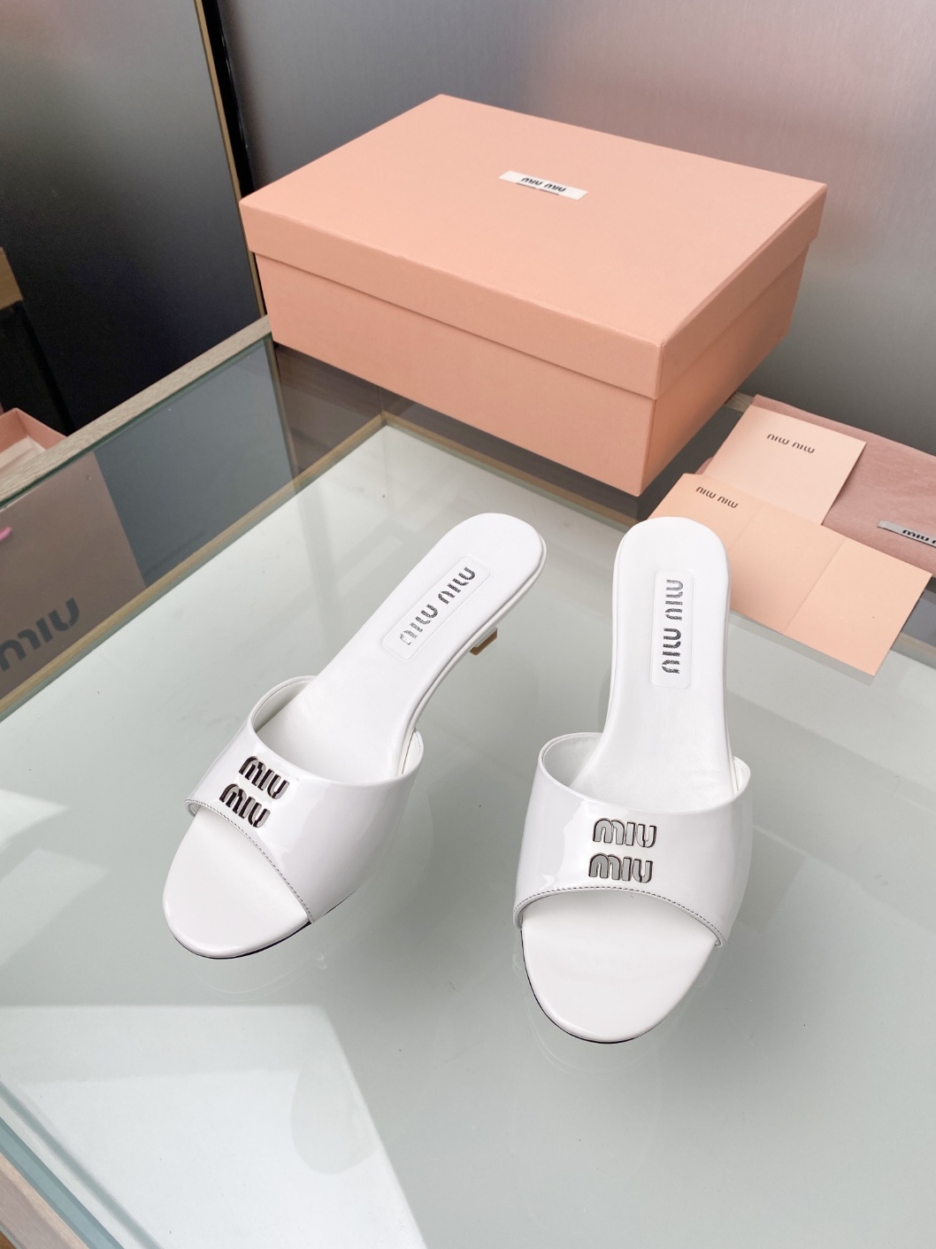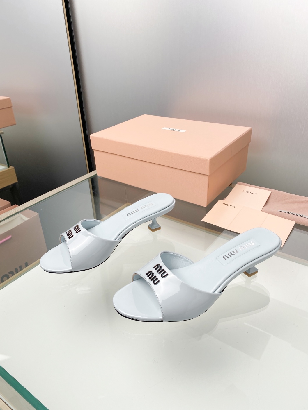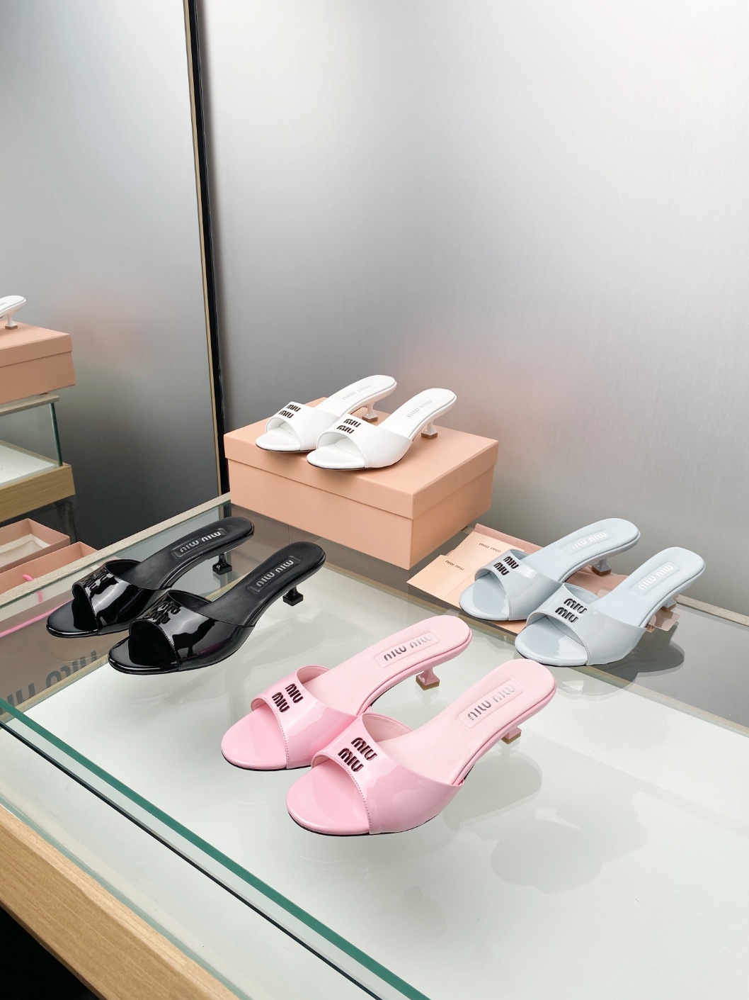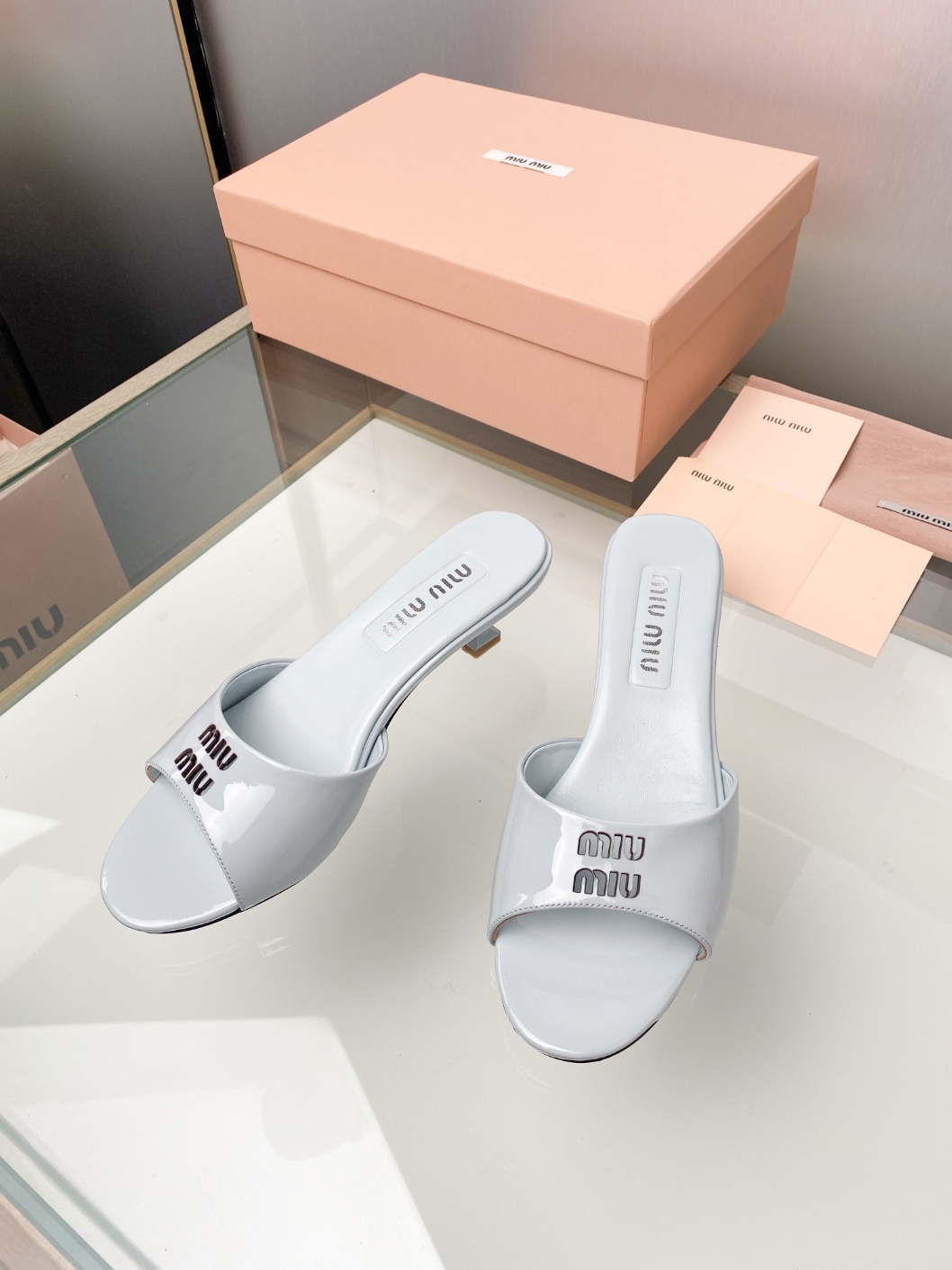 2022 미우미우 봄여름 럭키 컬렉션 고양이 뒤꿈치 슬리퍼 샌들 신발 표면: 맞춤 수입 송아지 에나멜 밑창: 오픈 오리지널 빅솔