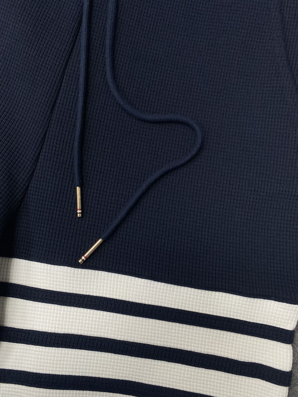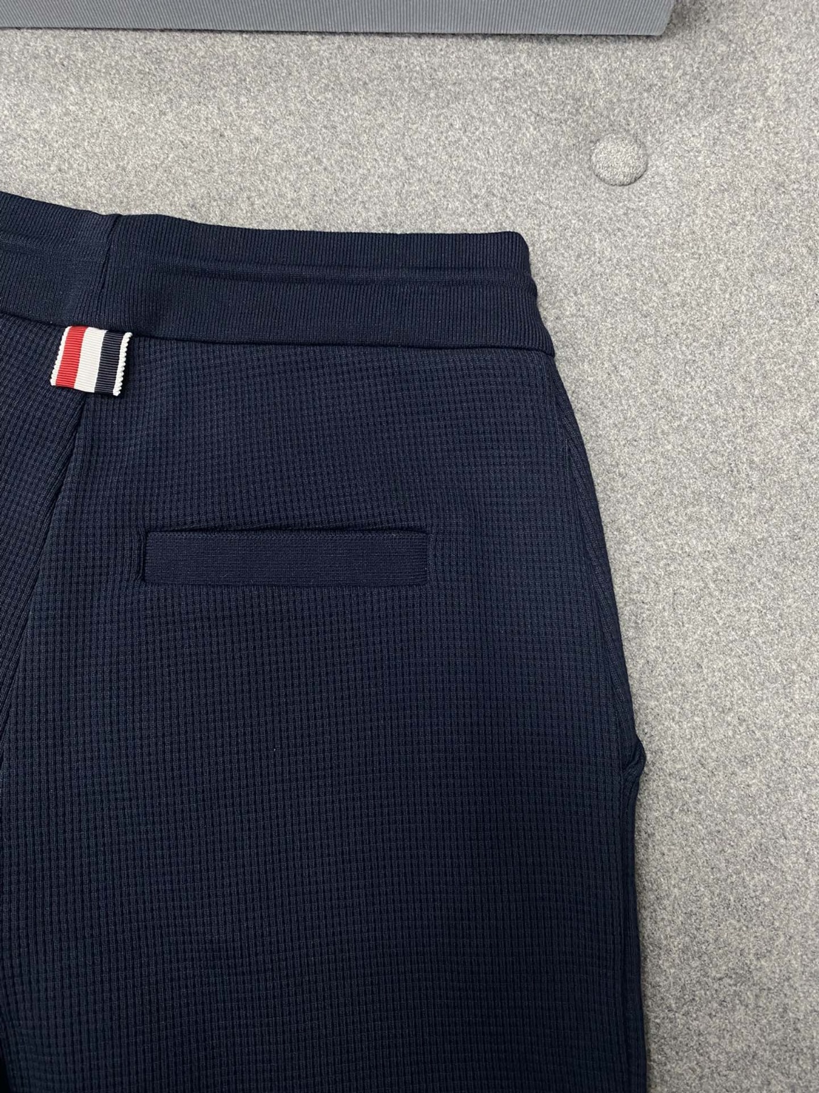 톰브라운 와플 숏 팬츠 TB의 물건 중 가장 어려운 것은 원단 시중 저가상품은 절대 다를 수 없음 zp원단을 개발하고 염색만 3개월 동안 이태리 고급 면사를 수입, 여러 공정을 거쳐 처리 촉감이 편안하고 통풍이 잘 되고 변형되지 않음 4개의 바의 접합부분도 특수 전용기를 선택하여 제작 진짜 99까지 zp 환원