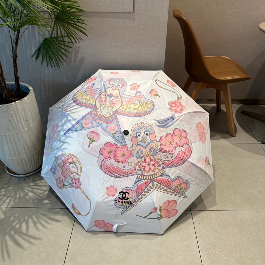 CHANEL (샤넬) 여름 신상품 우산 놀랍고 역동적인 새로운 코팅 기술 우산 천의 아름다운 컬러 인쇄가 우산면의 모든 곳에 퍼져있으며 모든 연령층에 어울리는 트렌디한 아이템 디테일을 확대하여 보여주는 공예