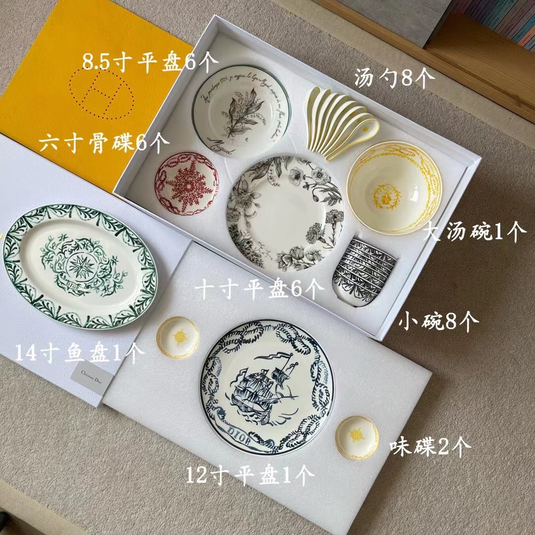 Di*or 2023 이른봄 (LA COLLE NOIRE) 41PCS 8인 식사용 코델리아데카스텔란이 심혈을 기울여 디자인 CANNAGEMISSDIOR컬렉션으로 새롭게 선보이는 클래식한 포인트 컬러 배색 장밋빛 컬러에 반응하는 강렬한 컬러의 플로럴 우드 계열