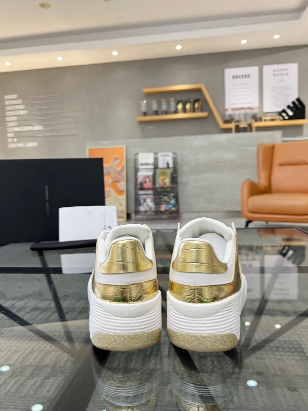 쥬세페 사노티 신상 스니커즈 초고품질 + 럭셔리 소재 선택 신발 표면은 오리지널 송아지 가죽+소가죽 발받침 순수 핸드메이드로 편안한 착용감만을 위한 체험 오리지널 고무 통굽