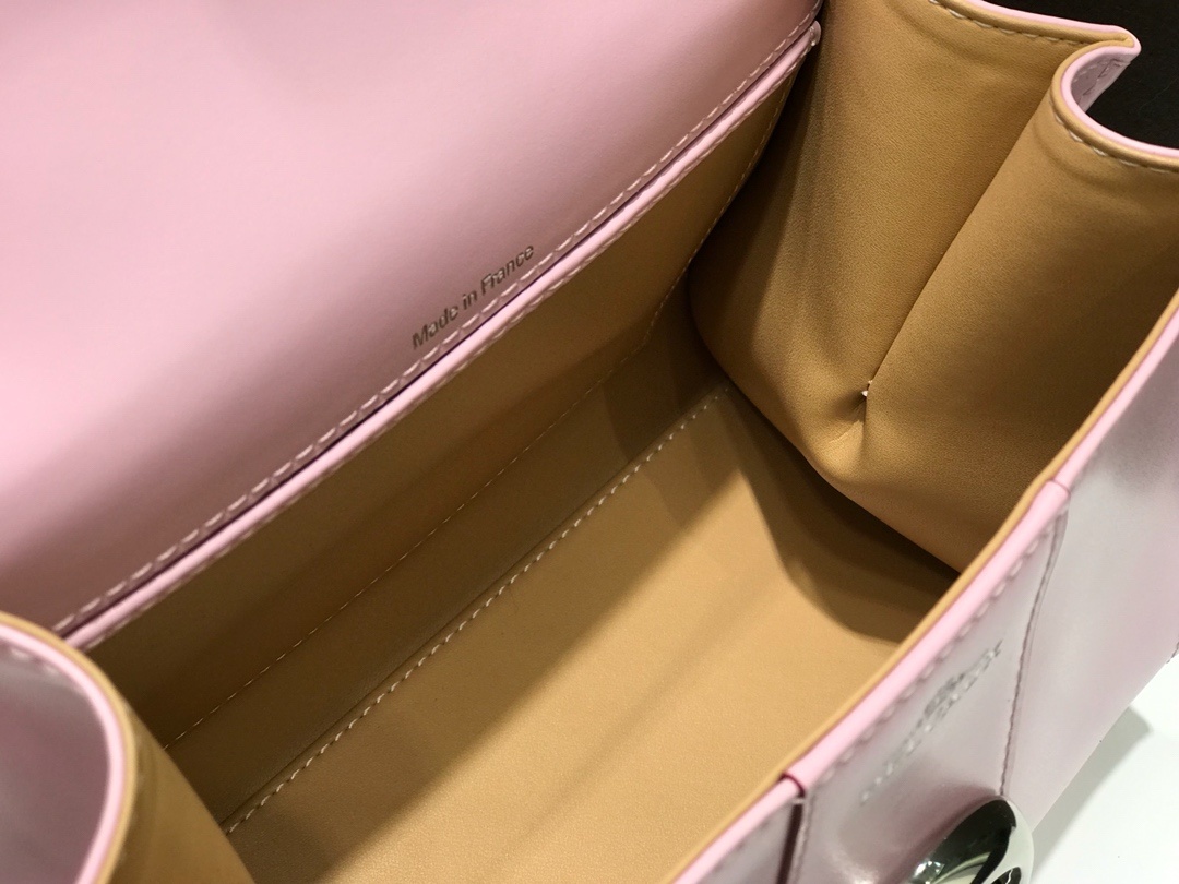 매장 신색, 신판, 벚꽃가루색상 벨기에 왕립 어용 브랜드 최고급 오리지널 [Delvaux] 뉴 더블링 브리앙박스 가죽현물, 쁘띠 양가죽안감 세트로 긴 어깨끈, 거울 및 작은 걸이 장식을 조절 사이즈 20x11x16cm