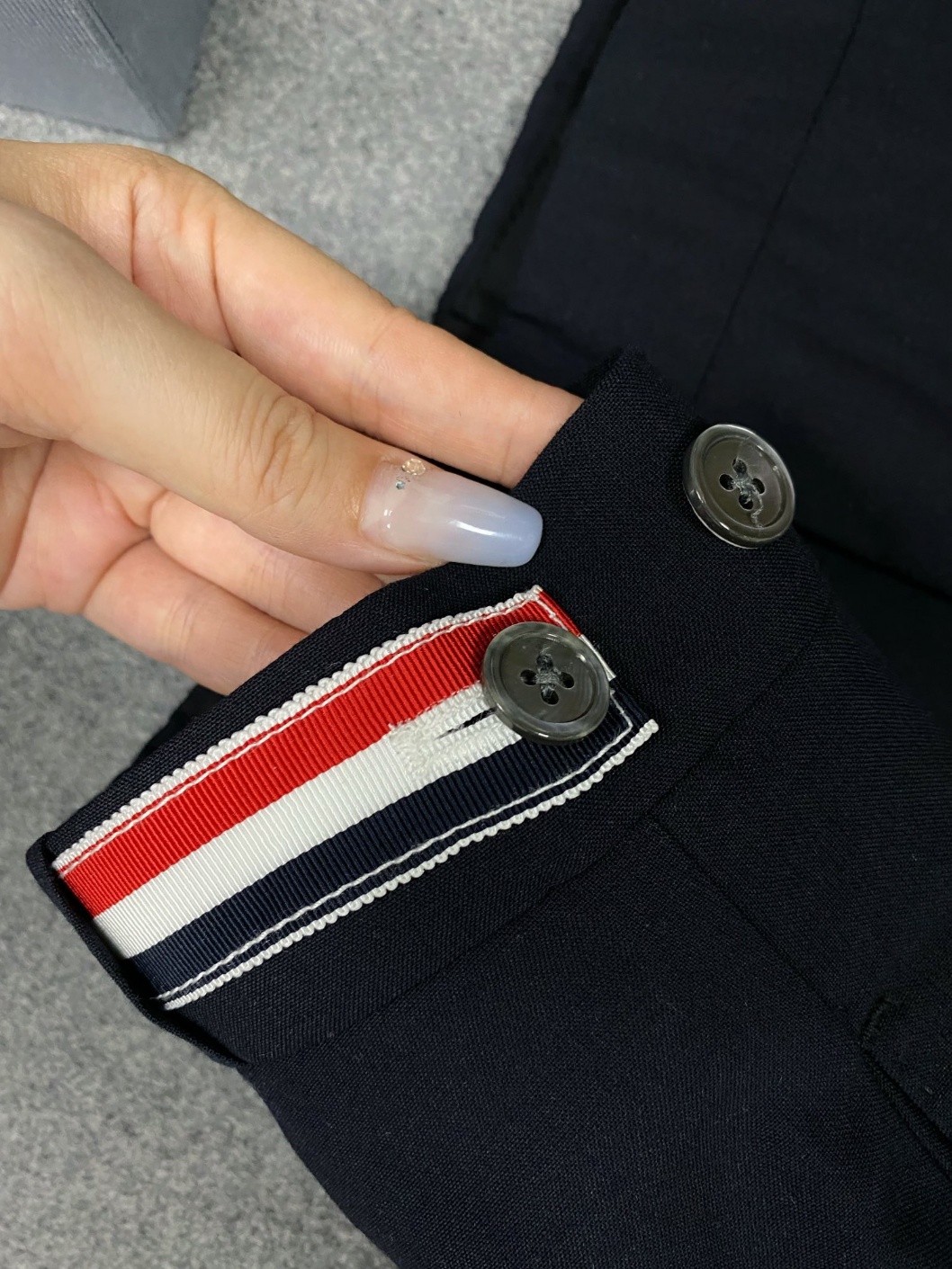 톰브라운 남성 양털 반바지 정장팬츠 순양모 정방 저지 100% 울로 가볍고 얇은 텍스처 매끄러운 텍스처, 또렷한 무늬, 자연스럽고 부드러운 광택 면을 꽉 잡고 풀어주면 구김이 거의 없고 약간의 접힘이 있어도 짧은 시간 안에 사라지는 최상급 원단 사계절 내내 옷 안의 습도와 온도를 편안하게 유지해 주며 겨울에는 따뜻하고 여름에는 시원한 효능이 있어 '호흡형 섬유'라고 할 수 있는 새로운 질감의 영역 zp와 마찬가지로 포니테일 안감 스트랩을 채택