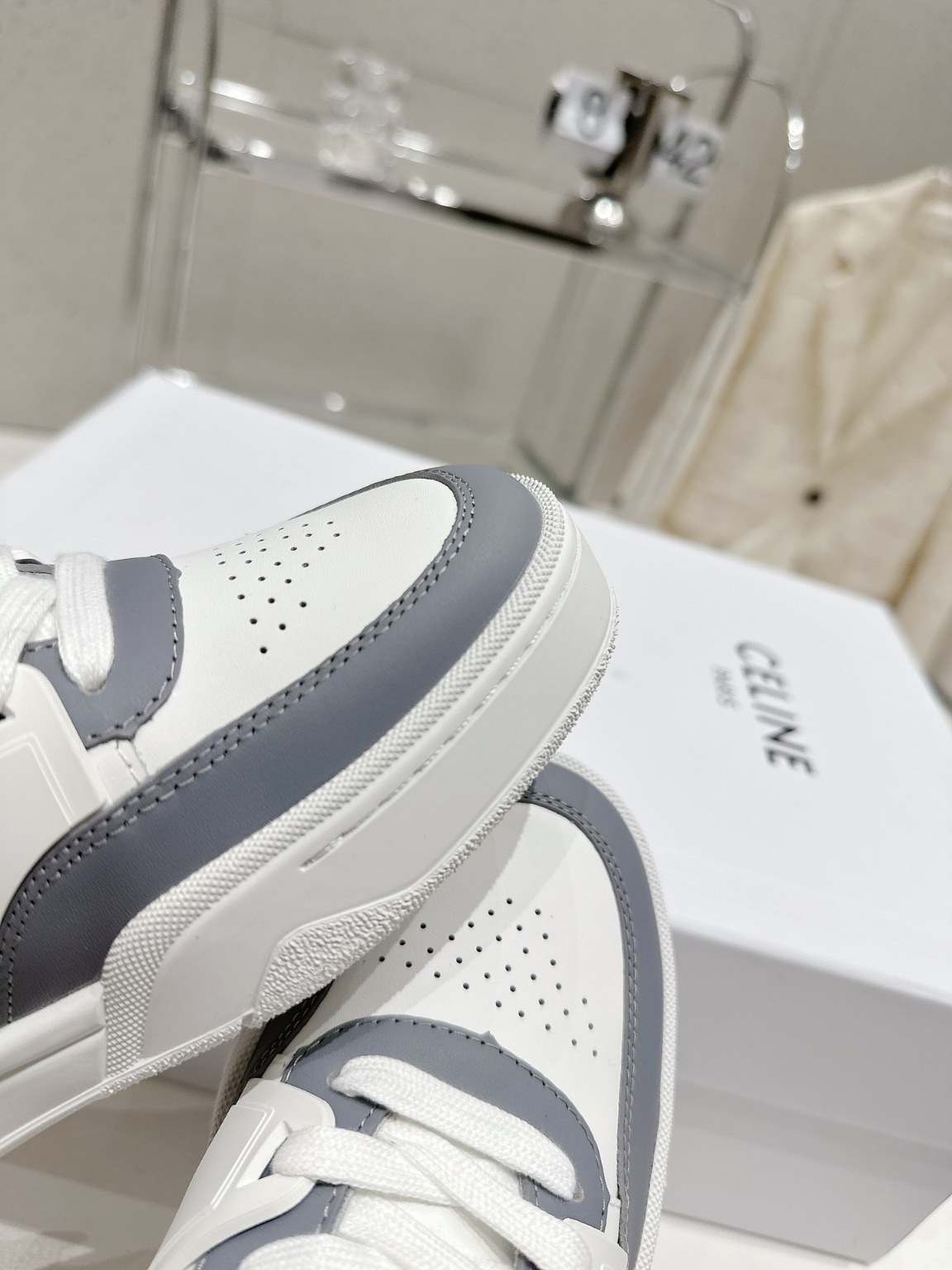 셀린 2023 신상 커플 슬립온 스니커즈 운동화 가죽 앞면 관리, 독창적이고 독특하며 옆면과 뒷굽의 로고가 심플, 부조화 없는 완벽한 화이트 슈즈 앞면 송아지 가죽 안감 통기 망사 속 TPU 오리지널 베이스