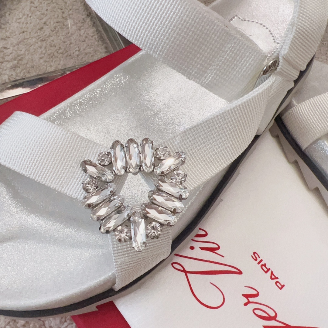 [RV] 트렉 키비브 패션 벨크로 샌들 스왈로브스키 버클과 세팅된 시보리 실크 편안한 언더클라우드 발감 원형 오픈 톱니 미끄럼 방지 베이스