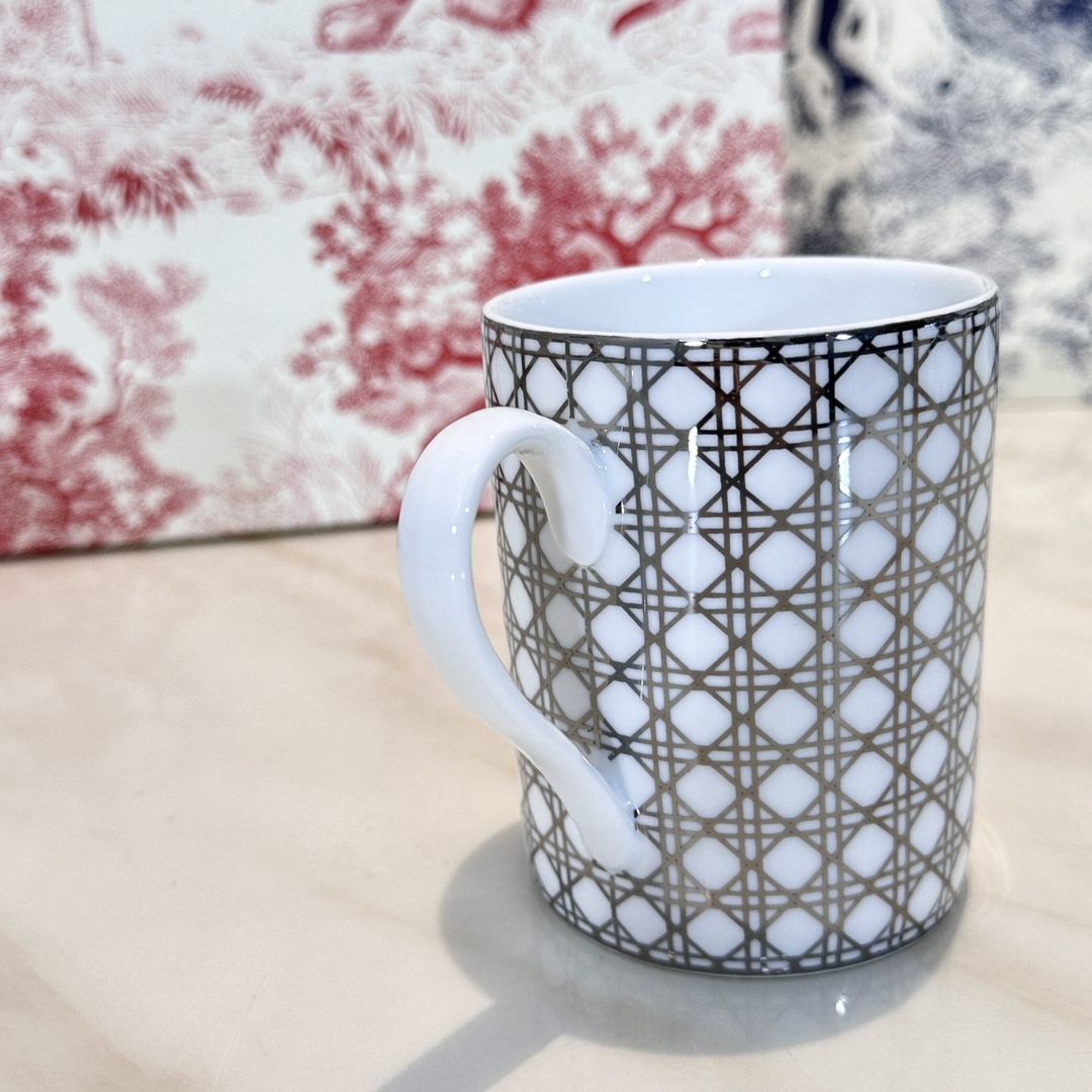 Dior 머그컵·실버(개별포장) Dior Maison은 Cordella de Castellane 디자인한 Cannage 라인 클래식한 넝쿨무늬에 실버톤 버전에는 플래티넘으로 포인트