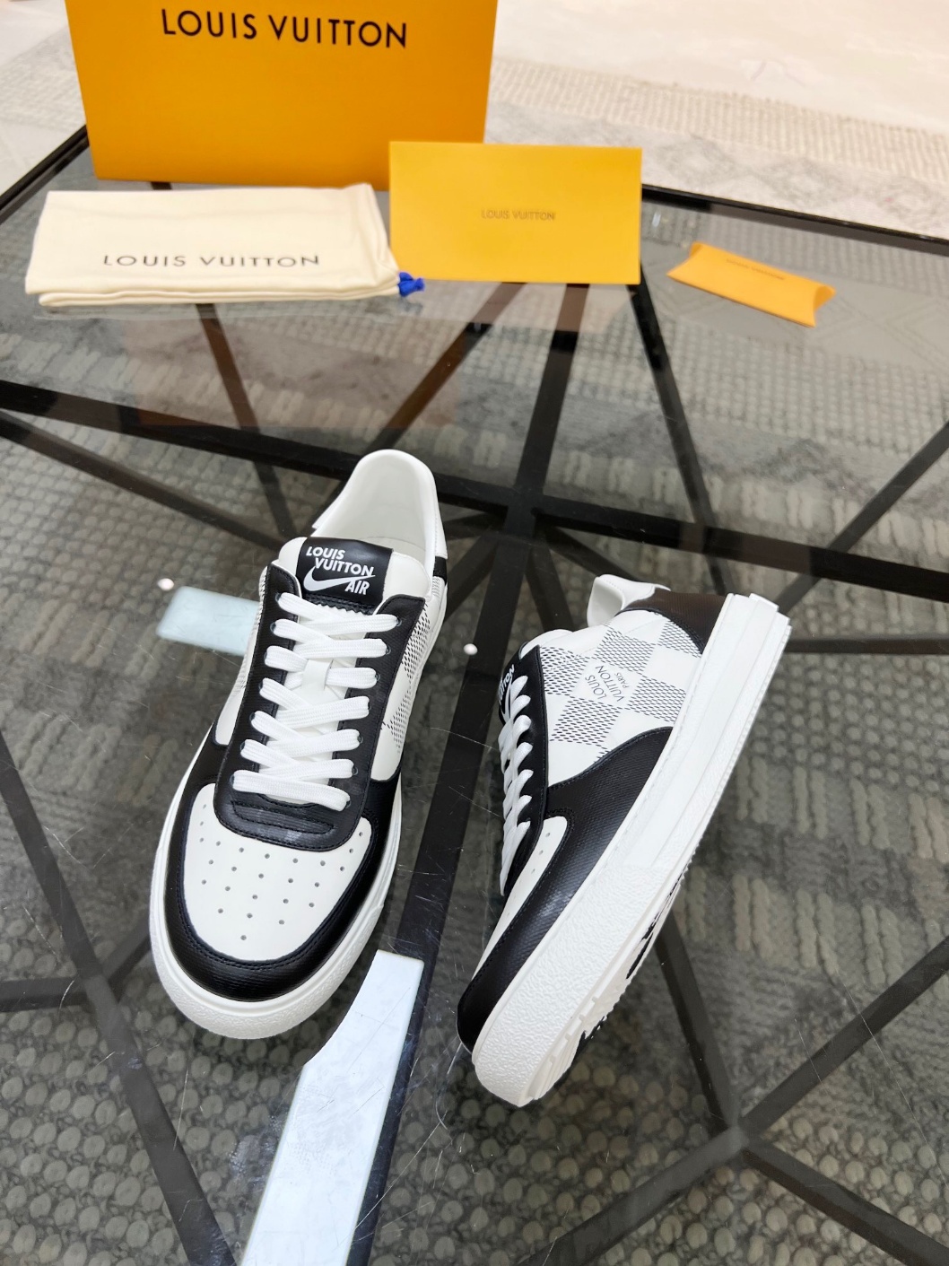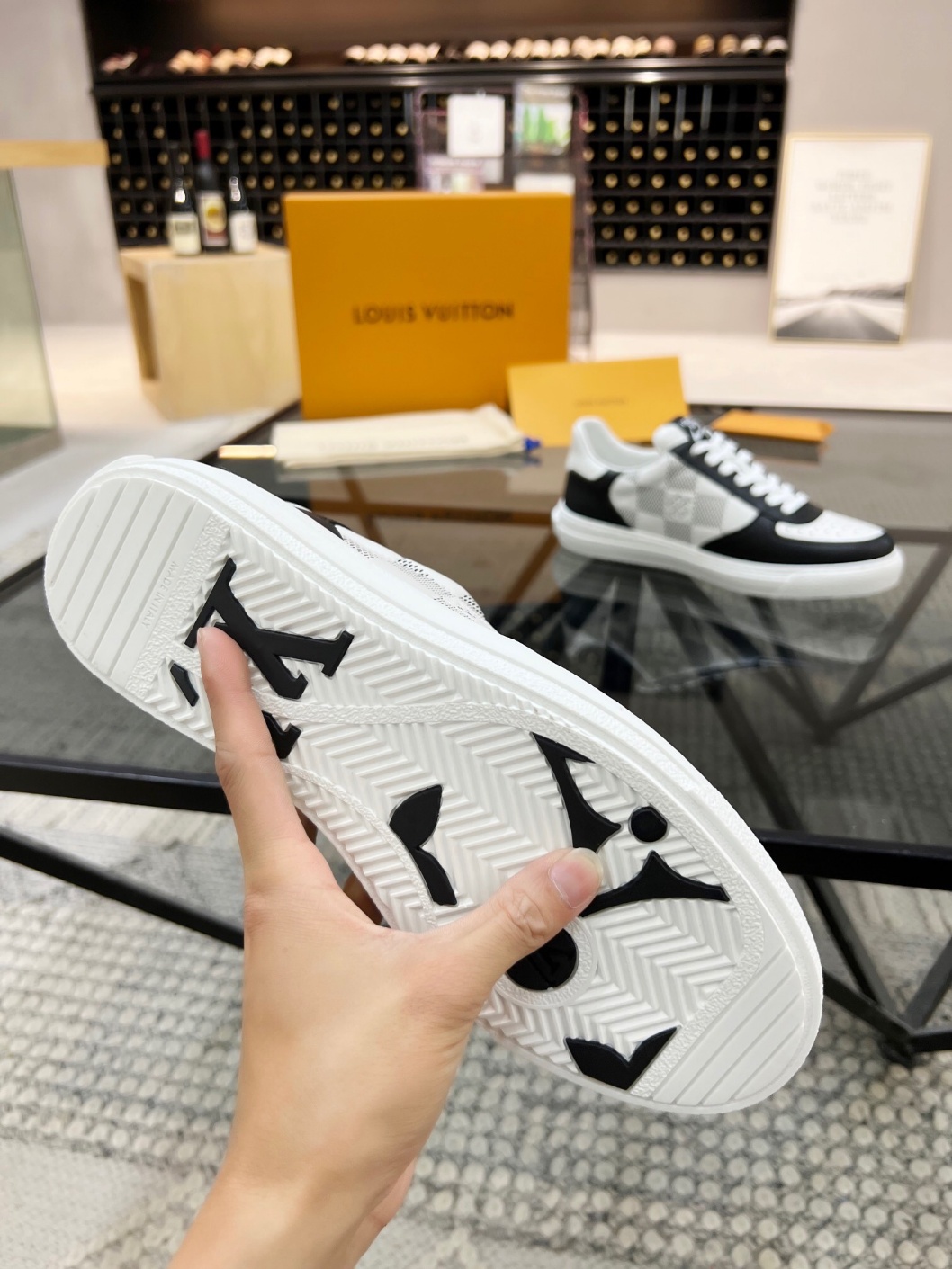 루이비통 신상 캐주얼화 하이 퀄리티, 라본 공법 신발 겉면에 소가죽 원단 소재 LV 프린팅 편안한 통기성 소가죽 안감+LV 오리지널 깔창