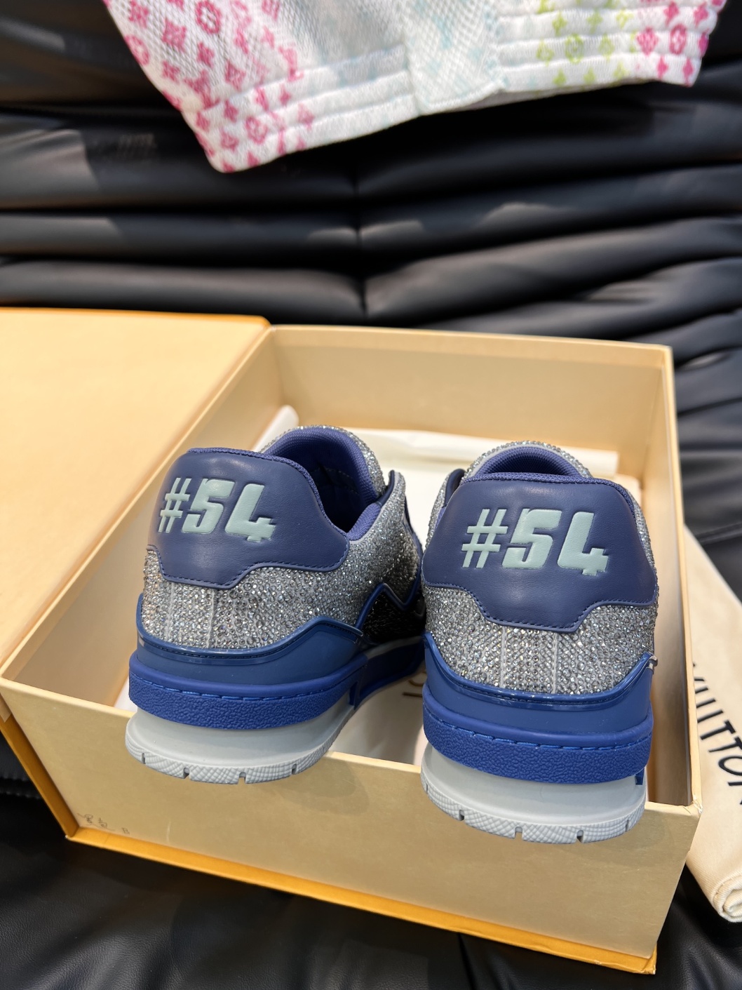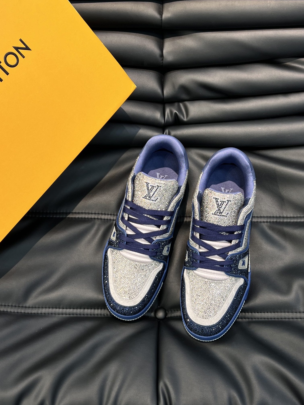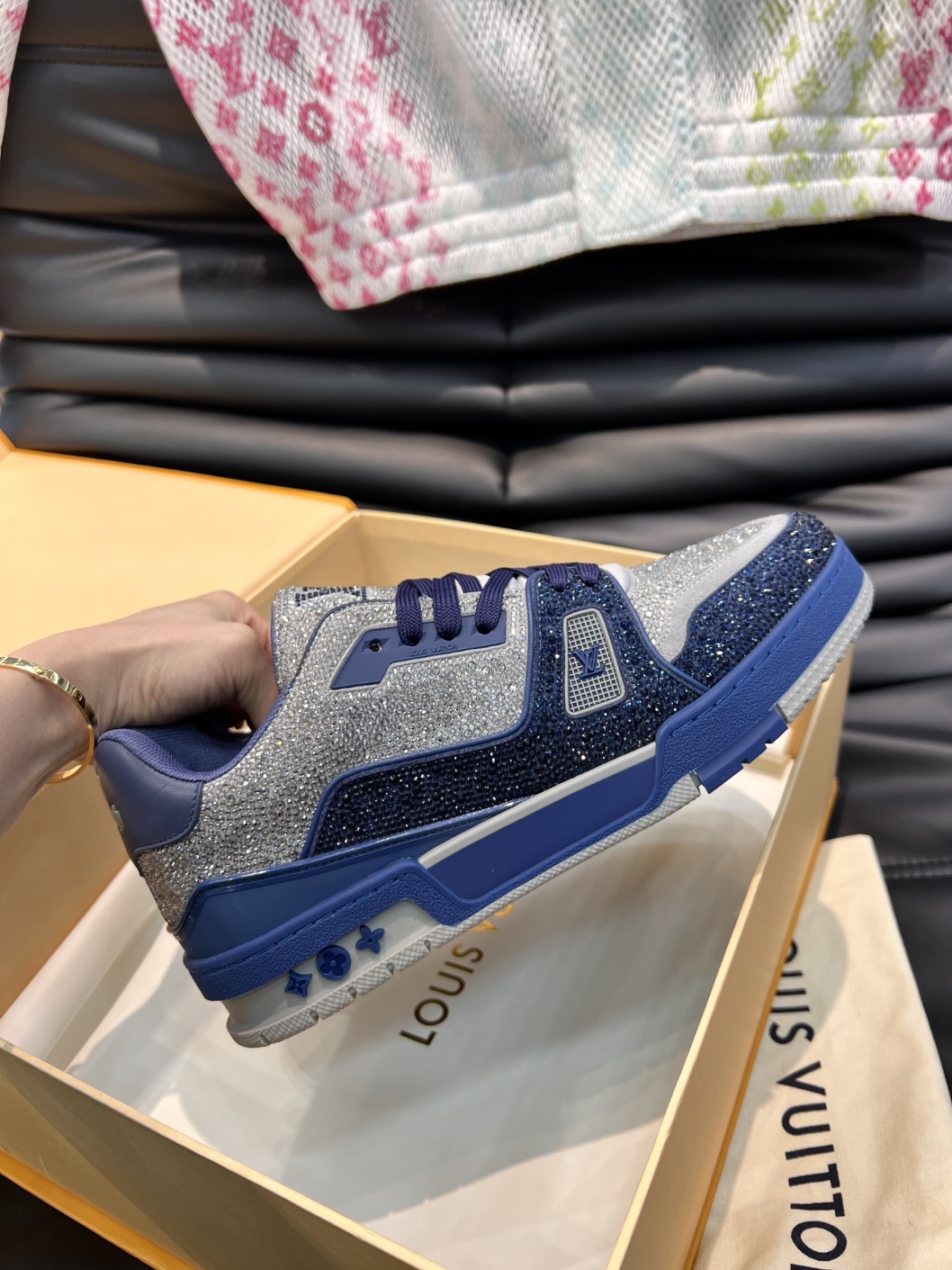 LV 럭셔리 Trainer 커플 한정판 핫픽스 에디션 수입산 체코 다이아몬드 세팅 신발의 표면이 반짝반짝 빛나며 7시간 동안 공들여 제작해야 클래식이 가능 테크놀로지 러버 아웃솔에 혁신적인 젤 패드가 있어 편안함