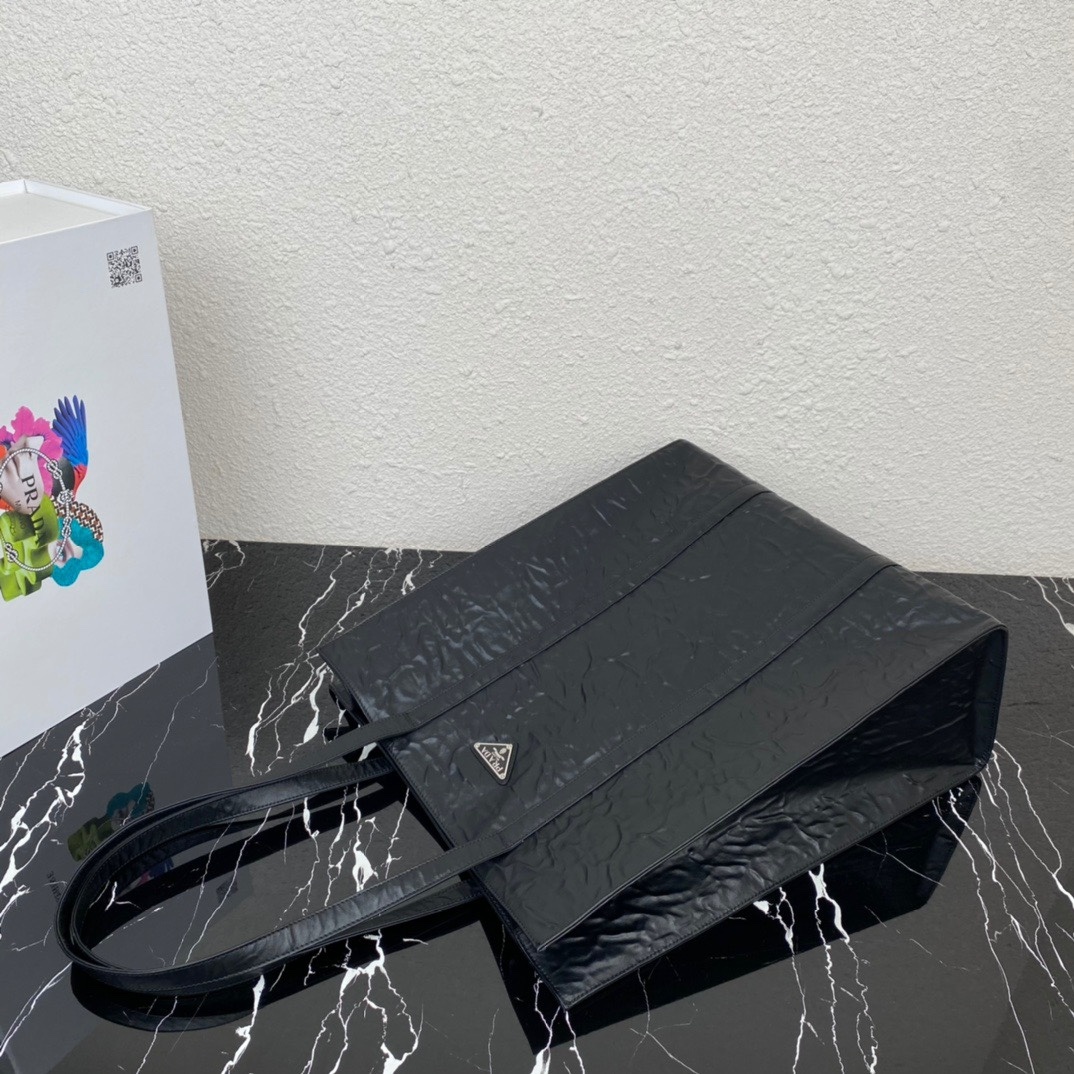 신상 스몰 사이즈 토트백 모델번호 1BG459 내추럴한 질감의 광택감 있는 소프트 양가죽을 소재로 한 토트백 핸드메이드 주름 효과와 정확한 구성 컨셉이 대비 용량이 매우 크고 가벼워 실용적 사이즈: 30x30x8.5cm