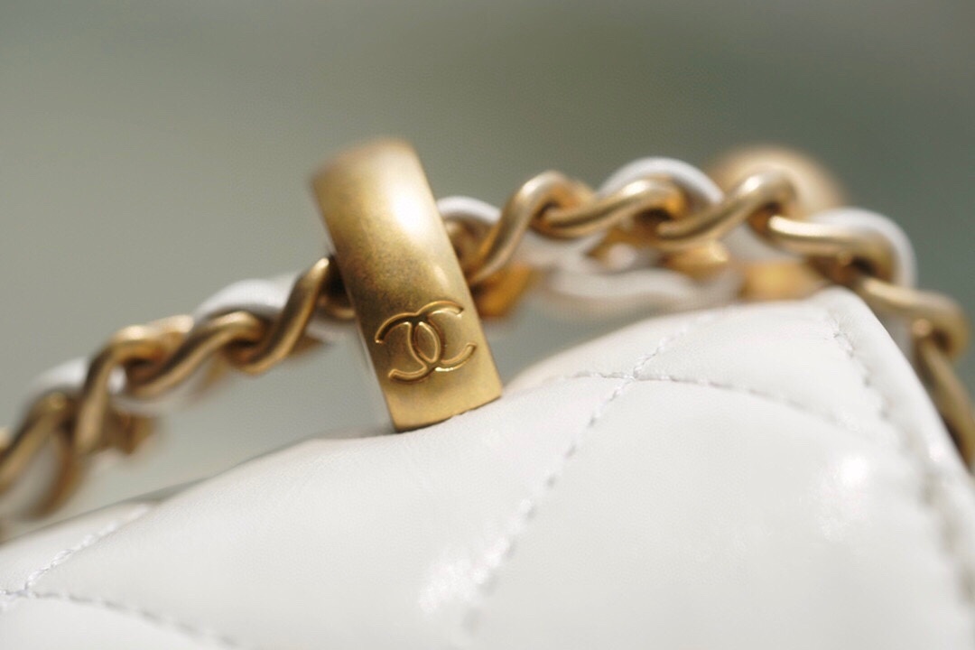 2021 고급 수제 공방플랩 골드볼 화이트 모델번호 AS2615 매끄러운 순면 송아지 가죽 촉감이 섬세하고 광택감 있는 구제 메탈과 매치 빈티지하면서 우아하면서도 트렌디한 룩을 쉽게 연출가능 디테일 하나하나가 세련미를 발산하며 절제되고 고급스러움 사이즈: 12×19×8cm