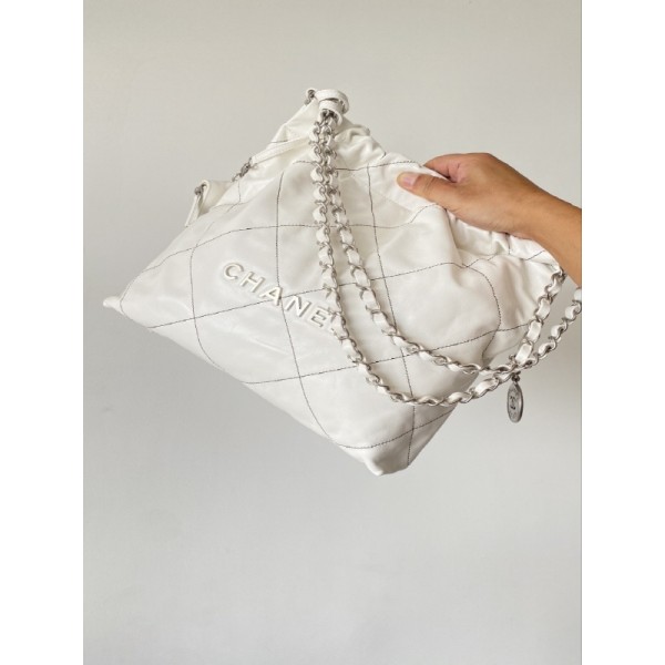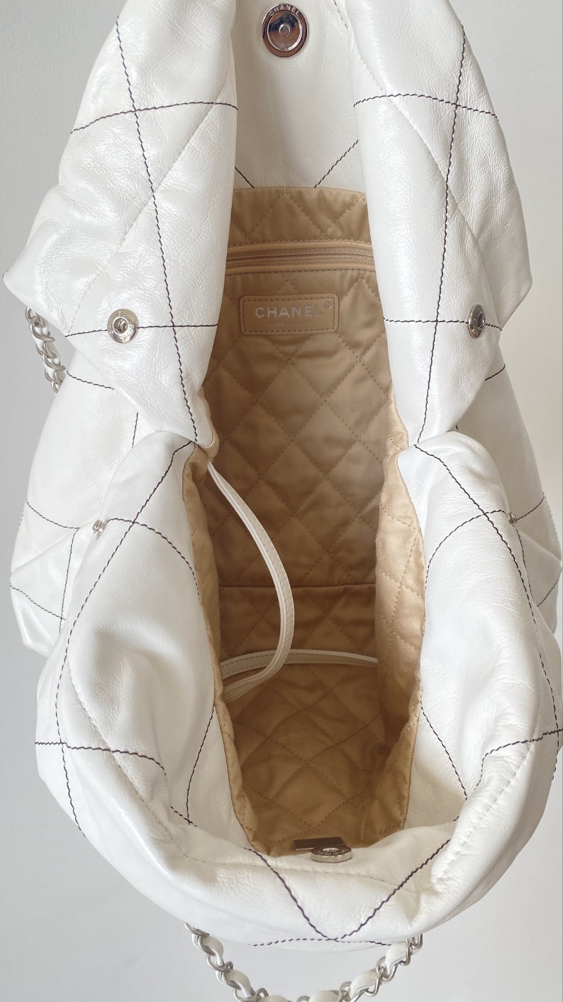 23C 신상 화이트 오프라인 실버 22bag 몬테벨로 송치 화이트 검은실 스티치, 실버 단추 사이즈: 35x7x37cm