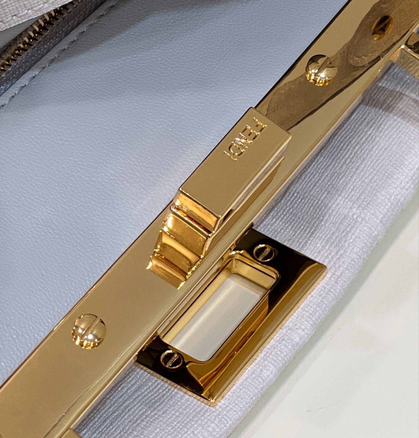 피카부 스몰 사이즈 백 FF 문양과 패치워크로 장식된 핸드메이드 가죽 일러스트 모티브 Fendi의 정신을 남다른 자유로운 여성스러움을 표현 부드러운 나파 가죽 라이닝으로 두 칸막이 내부에 지퍼백 손잡이와 조절 가능한 탈부착식 스트랩 사이즈: 23x8x20cm