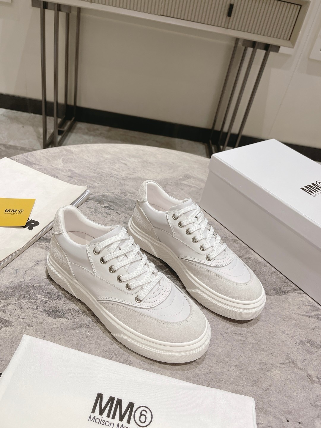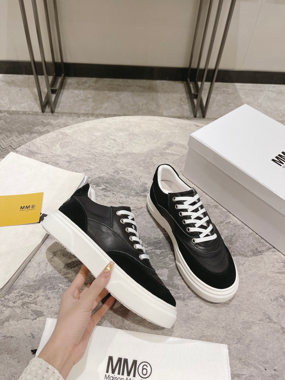 MM6 2023 봄여름 신상 스니커즈 원단맞추기 하이 실켓 벨벳에 오리지널 나일론 원단 안감 원판 일치 소가죽 맞추기 큰 바닥은 원판 일치 고무창 로고 또렷 글씨 깔끔, 드립 공정이 성숙되어 벗겨지지 않음