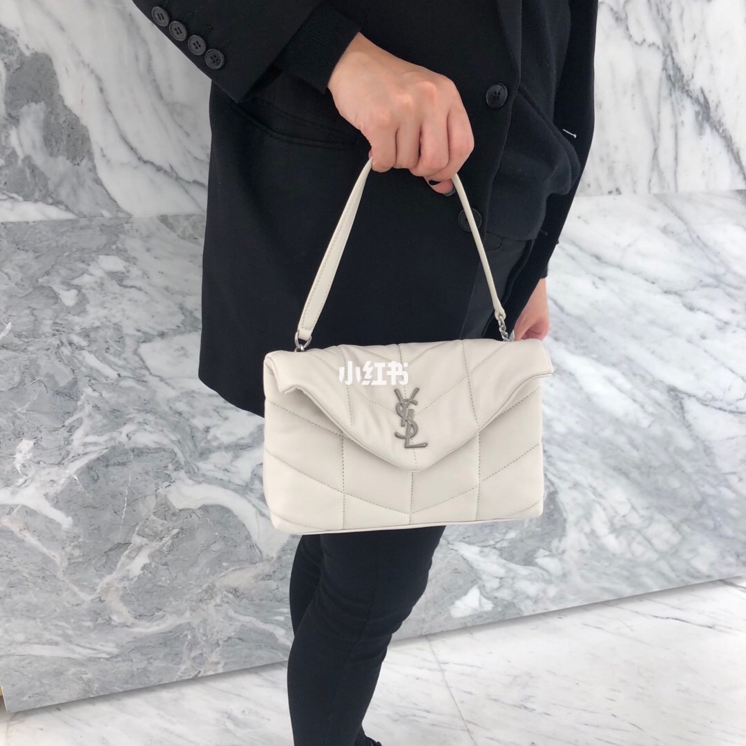 YSL 화이트 금단추 미니 LOULOU PUFFER 퀼팅 양가죽 가방 핫한 스타일 매장 최신 미니 사이즈 오리지널 ZP 가죽으로 제작되어 촉감이 부드럽고 섬세하며 조그맣게 들고 다니면 솜사탕처럼 사랑스러움 휴대폰 및 귀중품을 넣을 수 있는 지퍼백과 카드를 넣을 수 있는 카드 슬롯, 그 외 여분의 안주머니 가장 중요한 것은 품질, zp에 필적하는 품질 물건을 보면 바로 안다 사이즈:23x15.5x5.8cm 모델 번호:620333