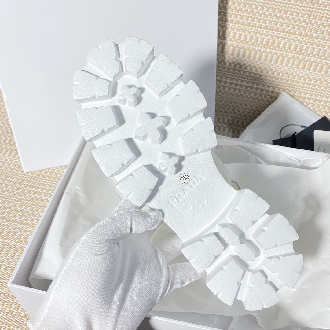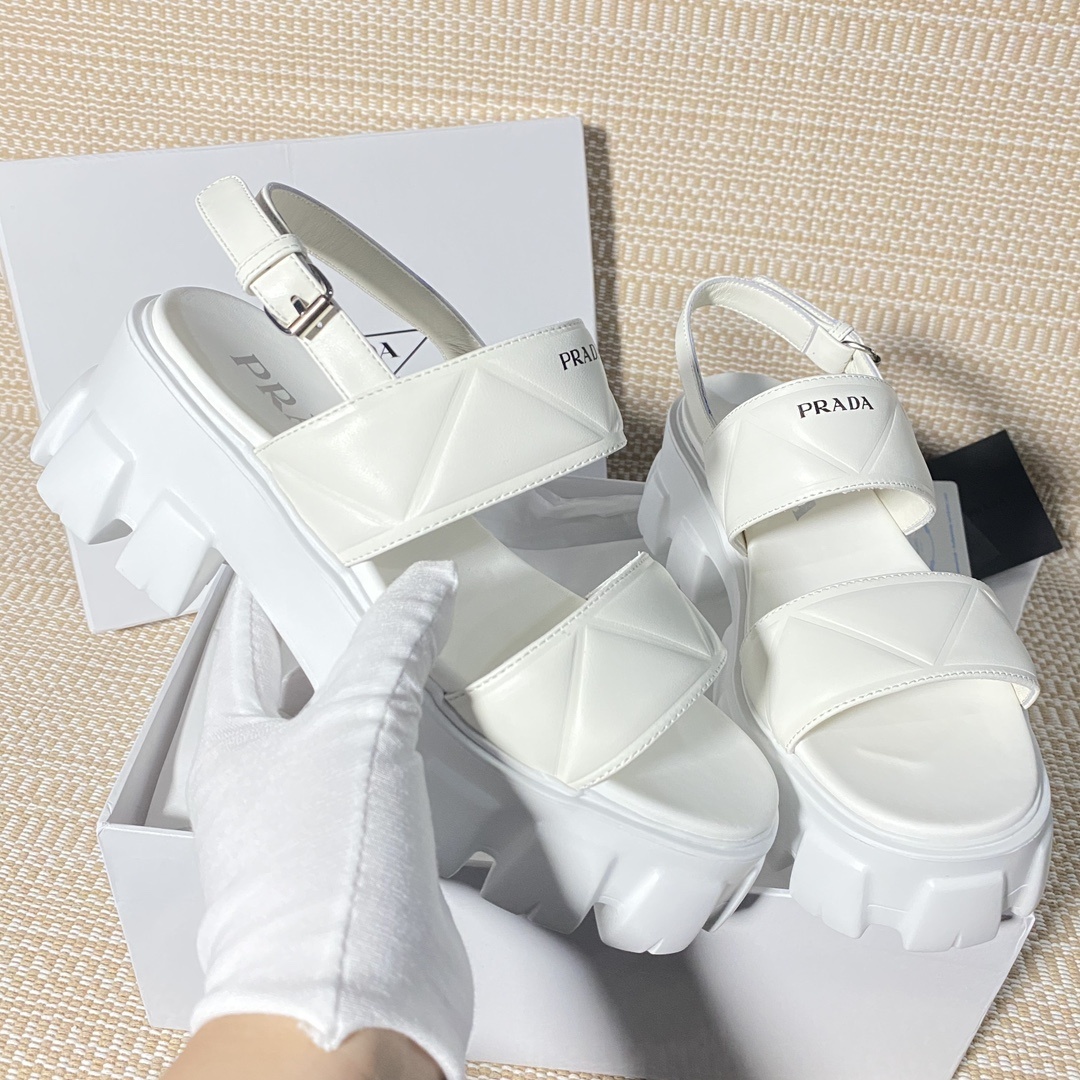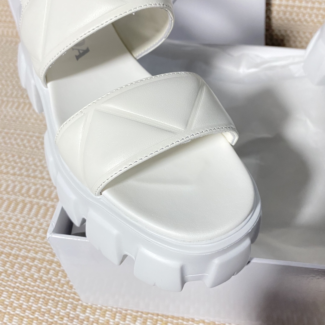 프라다 리얼 가죽 레터링 로고 프린트 여성샌들 클래식 삼각버튼, 통굽 클래식 패션 트렌디 여름 필수품 소재: 소가죽 원단, 안감 양가죽
