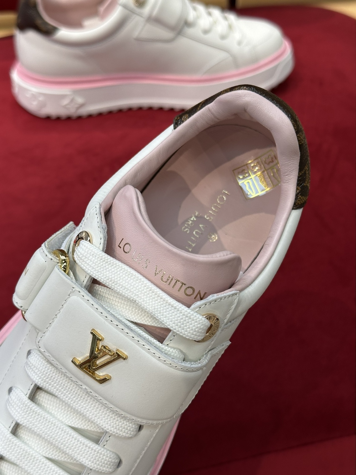 Louis vuitton ss23 new arrival 클래식 통굽 운동화 2023 봄여름 뉴패치 올드 플라워 모노그램 가죽 로고 장식으로 정교하기 그지없음 부드러운 소가죽을 소재로 한 타임아웃 스니커즈 측면 하트 로고가 돋보이고 네임 아일렛과 뒤 메탈릭한 가죽 트리밍으로 디테일이 풍부하고 고무 아웃솔을 두껍게 하여 모노그램 꽃을 피움