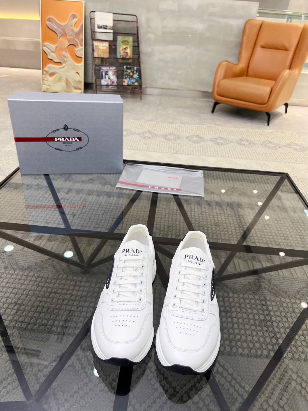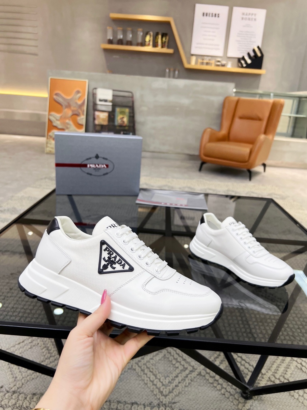 프라다 신상 · 원단품 로우탑 스니커즈 신발면은 오리지널 부드러운 소가죽 프라다 로고+소가죽안감+소가죽 깔창 오리지널 몰드창으로 높은 퀄리티를 자랑