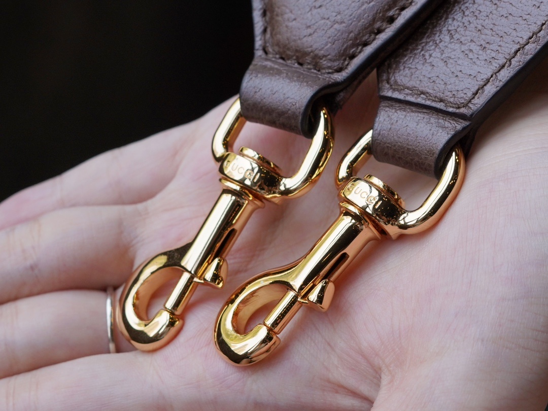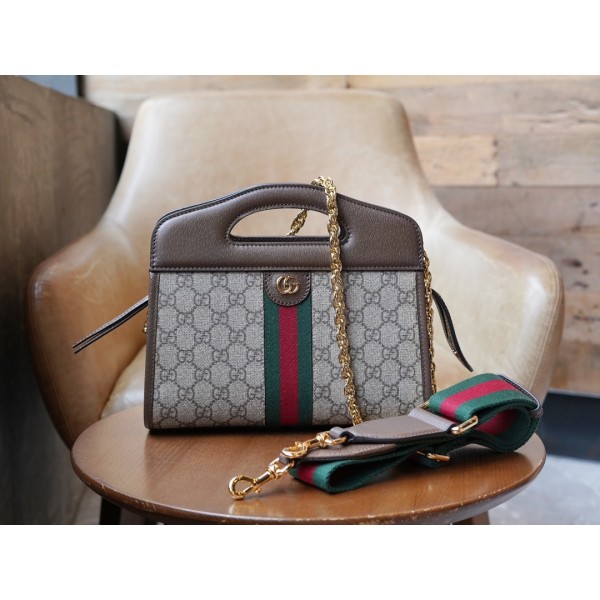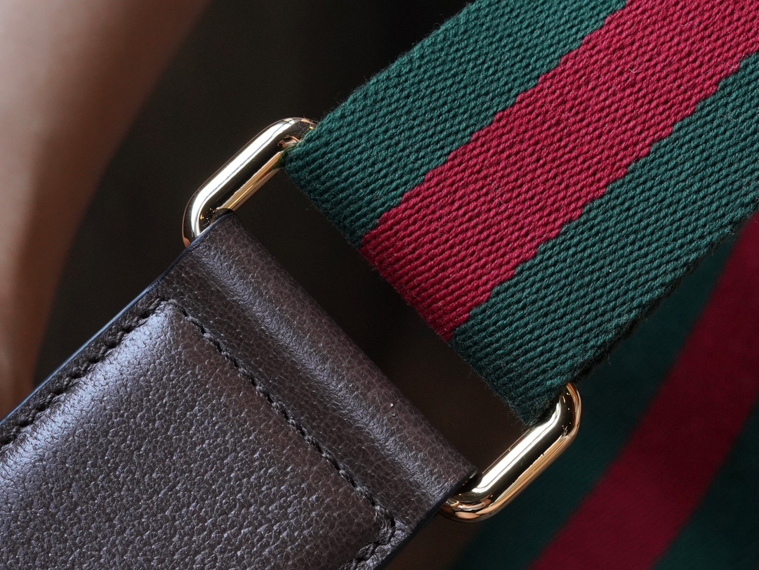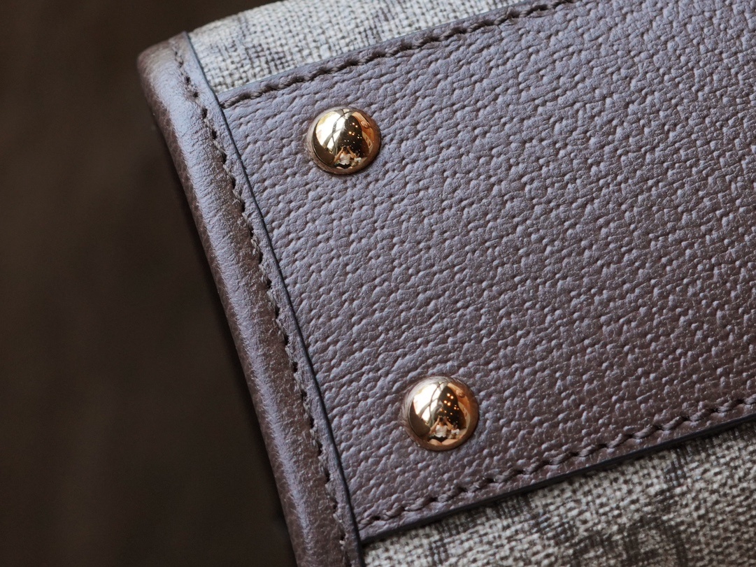 전통적인 진수와 현대적인 디자인이 조화를 이루며 독창적인 신작 웨빙과 더블 G 액세서리의 두가지 디테일을 모두 담고 있으며 초가을 컬렉션에서 창의적인 스타일링과 디자인을 새롭게 선보임 클래식한 베이지와 에보니 GG 캔버스디자인에 브라운 가죽 롤업 모델번호:693724 사이즈:25.5*29*10cm