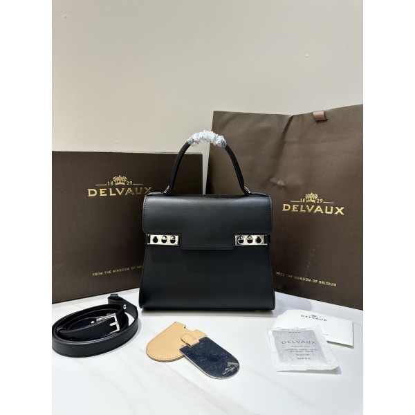 Delvaux 신형 Tempete PM 스위프트 가죽 블랙 실버 버클 탕페트는 1967년 벨기에의 유명 건축 디자이너 폴 고이탈스가 델보의 1967년 야칭(요트) 시리즈를 디자인하면서 시작됨 탑 핸들과 어깨끈이 포함 토트, 숄더백, 또는 크로스백으로 기분에 따라 선택하며 순정 swift 송아지 가죽 안감 양가죽 정품 철물 부품 긴 어깨끈 조절이 가능하여 메고 들고 다닐 수 있어 실용성이 좋음 size: 폭 21.5cm, 높이 19cm, 깊이 10cm