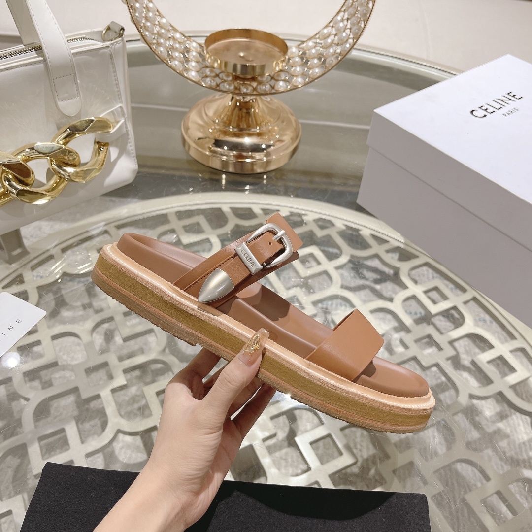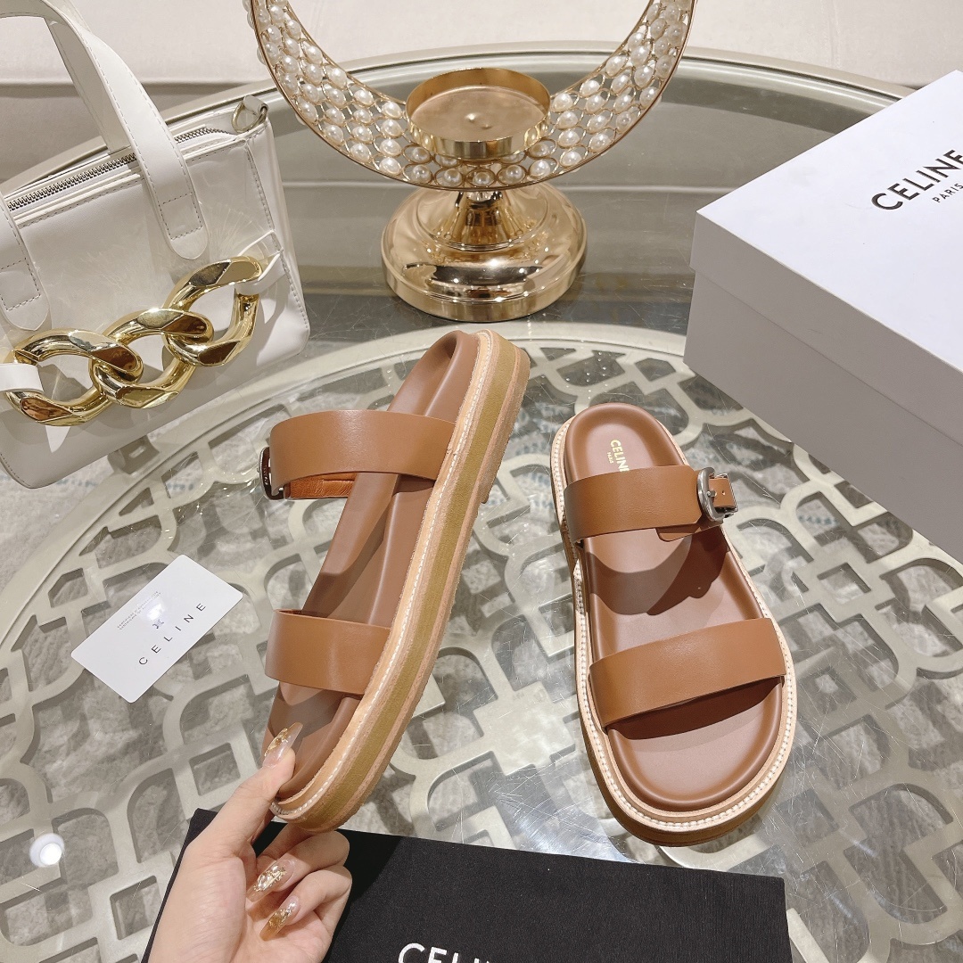 CELINE 구매대행급, 봄여름 신상 개선문 빈티지 로마 샌들 슬리퍼 중공업 버전, 가짜 로우 상품 거부 갑피: 수입 송치 안감: 소가죽 대창 : 오리지널 커스텀 고무창 (진피 테두리)
