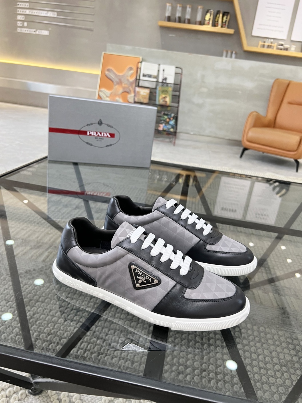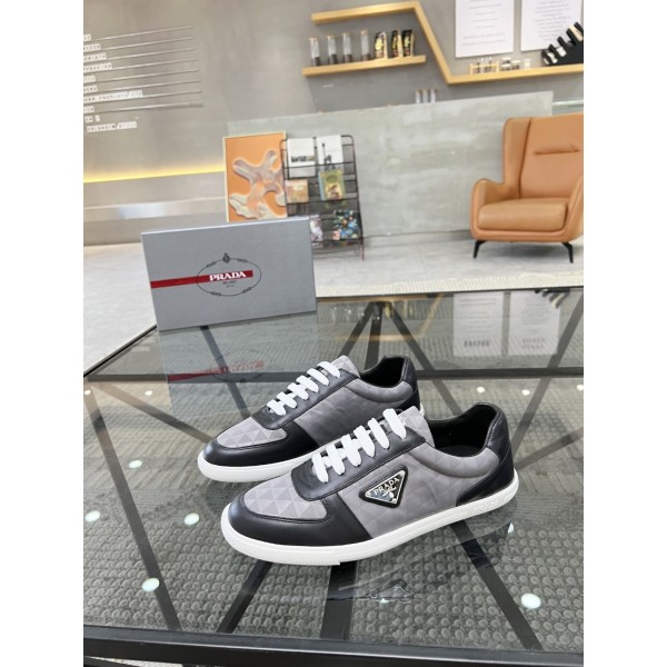 프라다 신상품 캐주얼화 매장 동기화 신발면 이탈리아 수입 소가죽에 캔버스 원단 클래식 핏의 교묘한 패치워크 공법 수입 물염 소가죽 안감 밑창: 오리지널 공급원판 고품질로 매장을 마음대로 드나들 수 있음