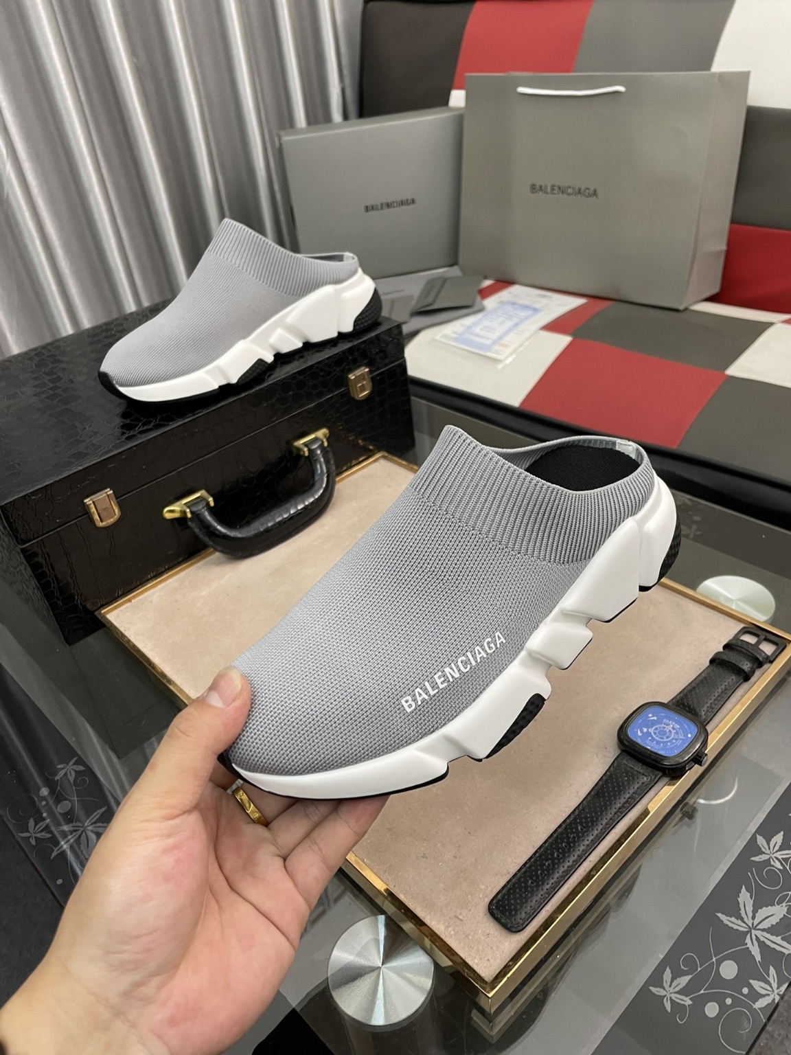 2023 발렌시아가 뮬슬리퍼 업그레이드된 Speed 2.0 버전 새로운 양말 슬리퍼 출시 2.0버전의 양말 부분은 발등과 발목을 완전히 감싸줌 신발은 원판 비직 일체 성형기술로 심리스하게 신발 밑창을 5조각 중창으로 변경하여 탄력과 비교감이 우수 시중 일반 고무창은 절대 사용하지 않음