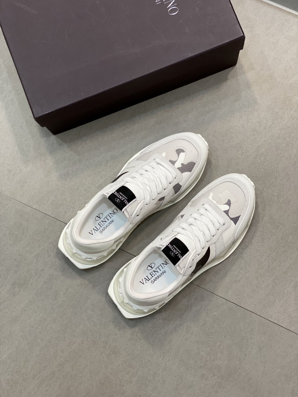 발렌티노 하이버전 스니커즈 공식 홈페이지 동시 발매 신발 표면은 이탈리아 수입 소가죽 원판 통기망 패치워크 디자인과 오리지널 양가죽 안감을 매치 오리지널 콤비 쿠션 베이스를 제공