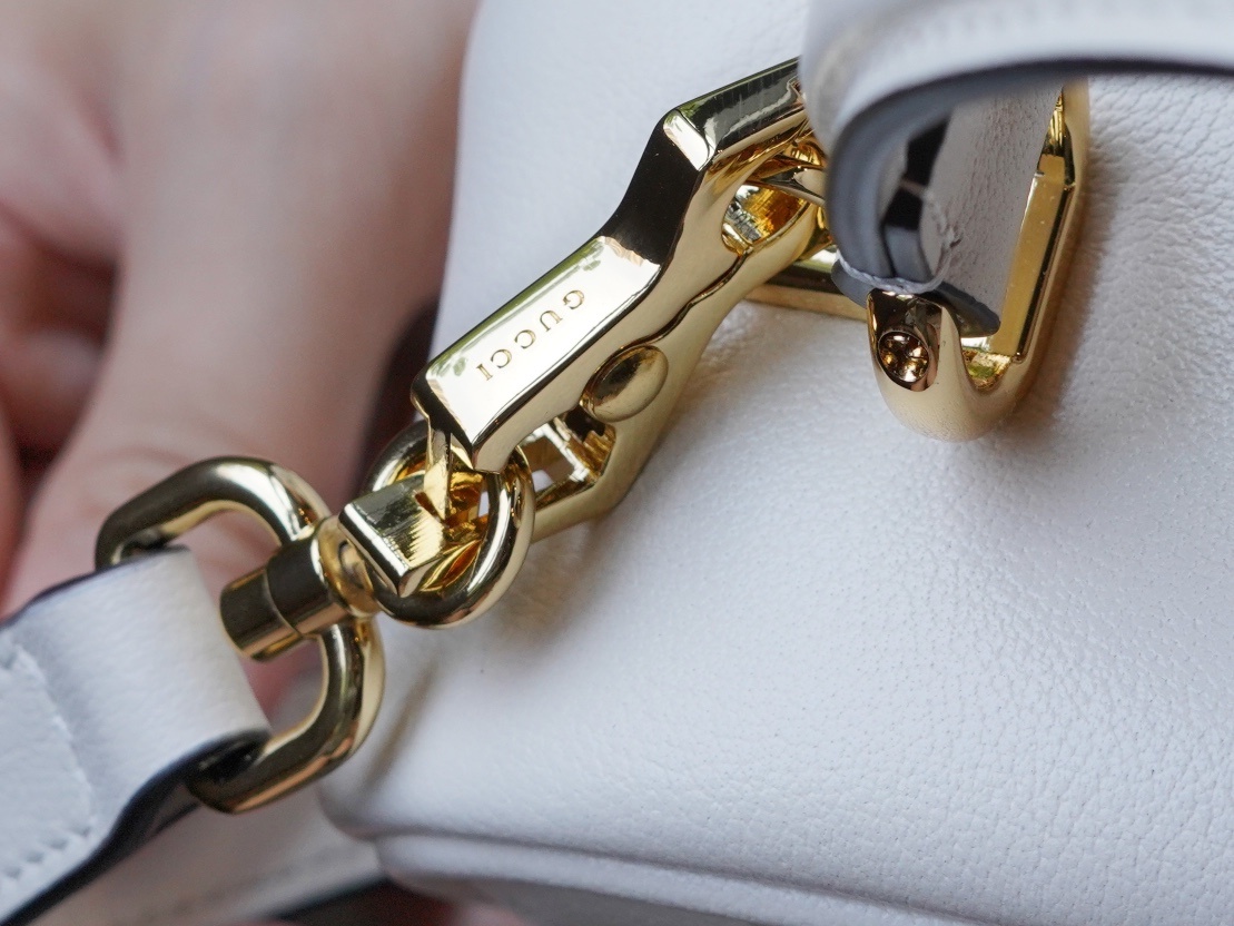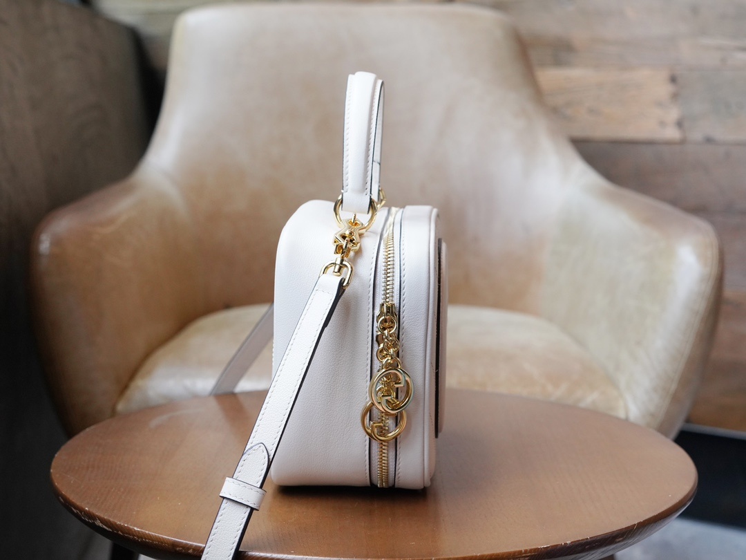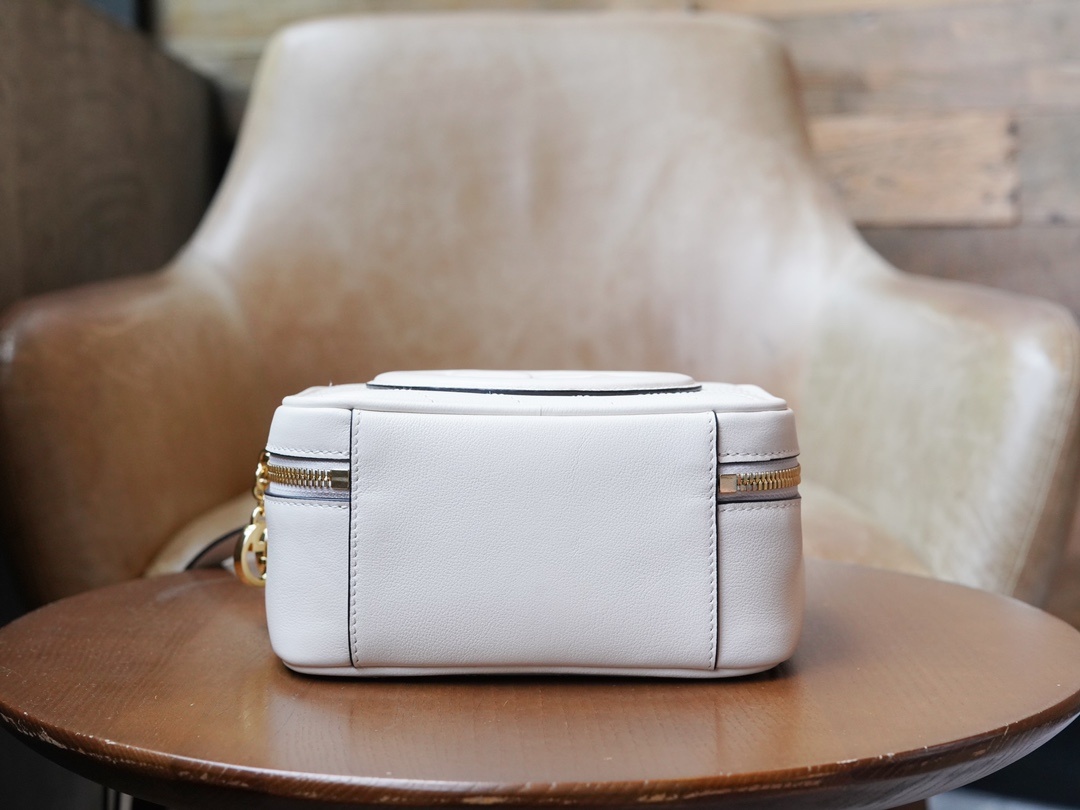 라운드 토글 더블 G로 구찌 블론디 라인을 연출해줌 토트백과 크로스백 등 클래식한 아이템으로 세련된 가죽패치 디테일로 브랜드의 아이덴티티를 재해석 사이즈:17*15*9cm 모델번호:744434