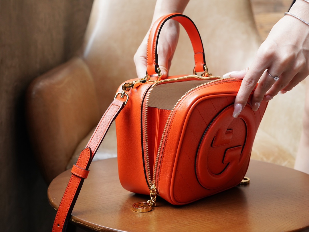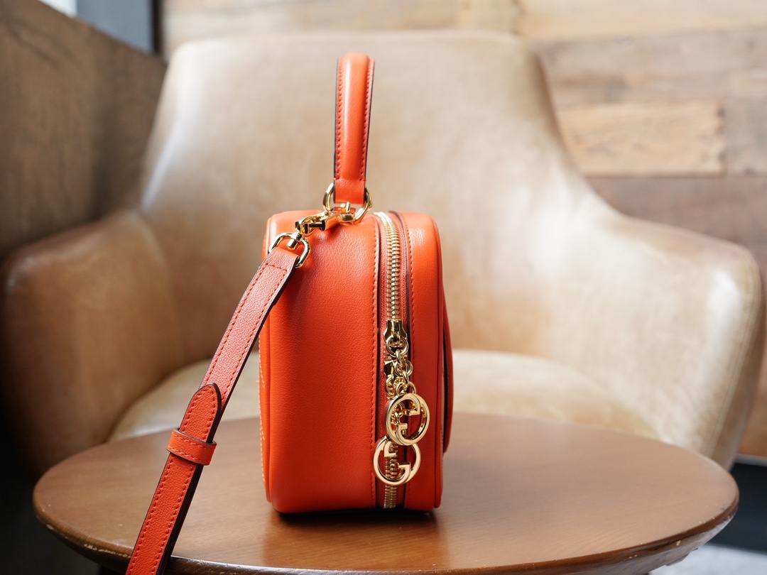 라운드 토글 더블 G로 구찌 블론디 라인을 연출해줌 토트백과 크로스백 등 클래식한 아이템으로 세련된 가죽패치 디테일로 브랜드의 아이덴티티를 재해석 사이즈:17*15*9cm 모델번호:744434
