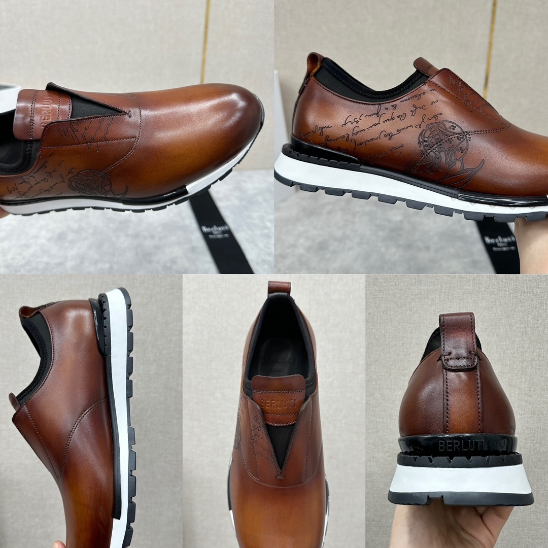 Berluti Fast Track 가죽 운동화 공식판매가 RMB 11,200 최신형 남성 캐주얼 런닝화 수입가죽 수작업 색상변경 스크리닝 소재 비대칭 레이저 자청 스크리토 패턴 송아지 가죽 라이닝과 블랙 이너 구미 스타일 주마 왁스 실 수제 봉제 안감 수입 블랙 송아지 가죽 이중 송아지 가죽 깔창 제작 깔창 고탄성 오솔레 전체 압착, 새로운 오픈형 큰 바닥 5색 TPU 밑창, 금형의 섬세도 요구는 매우 높으며 경면처리 및 최종 품질 조정!오리지널 박스 포장으로 발매