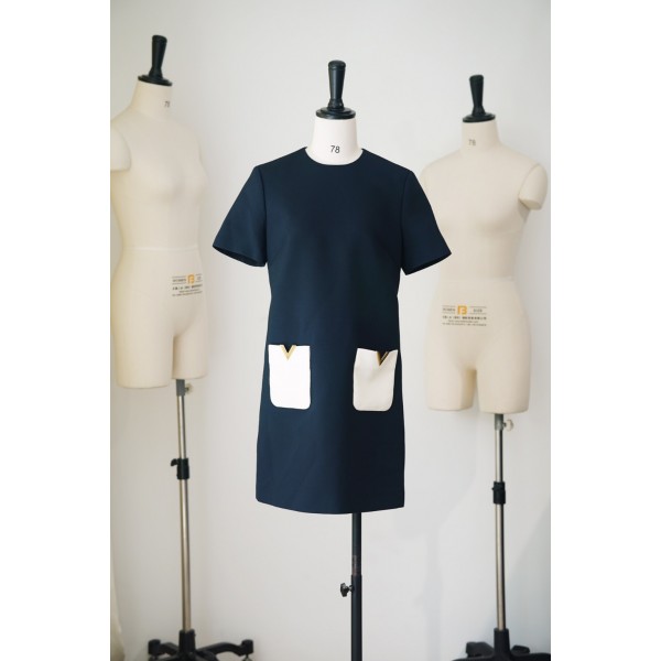 VALENTIN* 23 여름 네이비 패치 포켓 실크 원피스 YB 수입 헤비무스 모직 원단으로 제작 양쪽 배색 입체 포켓 포인트 VT 금버클 안감 실크 상체 고급 버팀목 네이비 컬러 베스트 에디션 출시